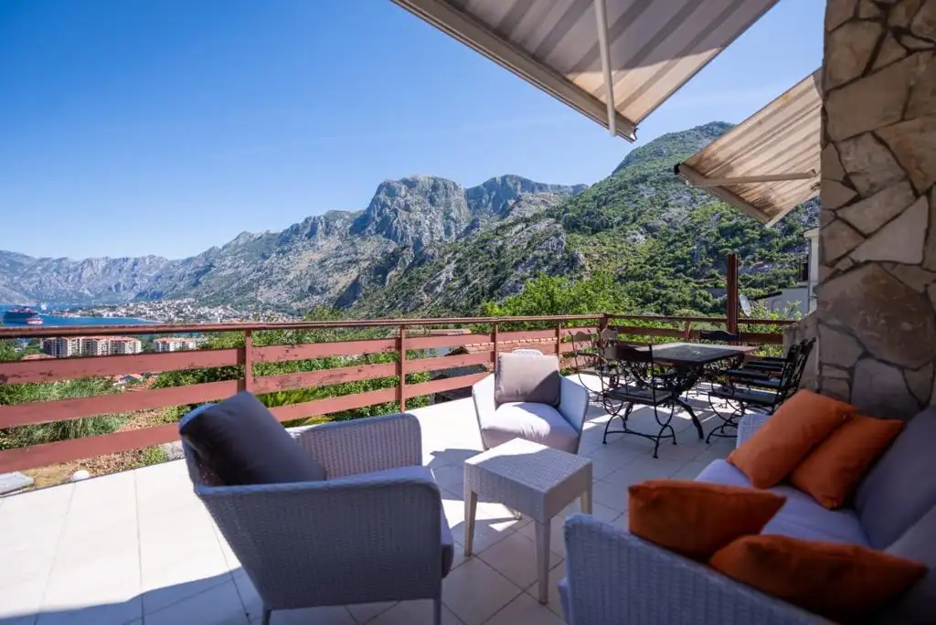 The house is located in the municipality of Kotor, in the best location on the coast of Skaljari. Skaljari is located south of the city of Kotor. The terrace offers stunning views of the mountain and the sea, in the yard of the house there is a swimming pool with a recreation area.