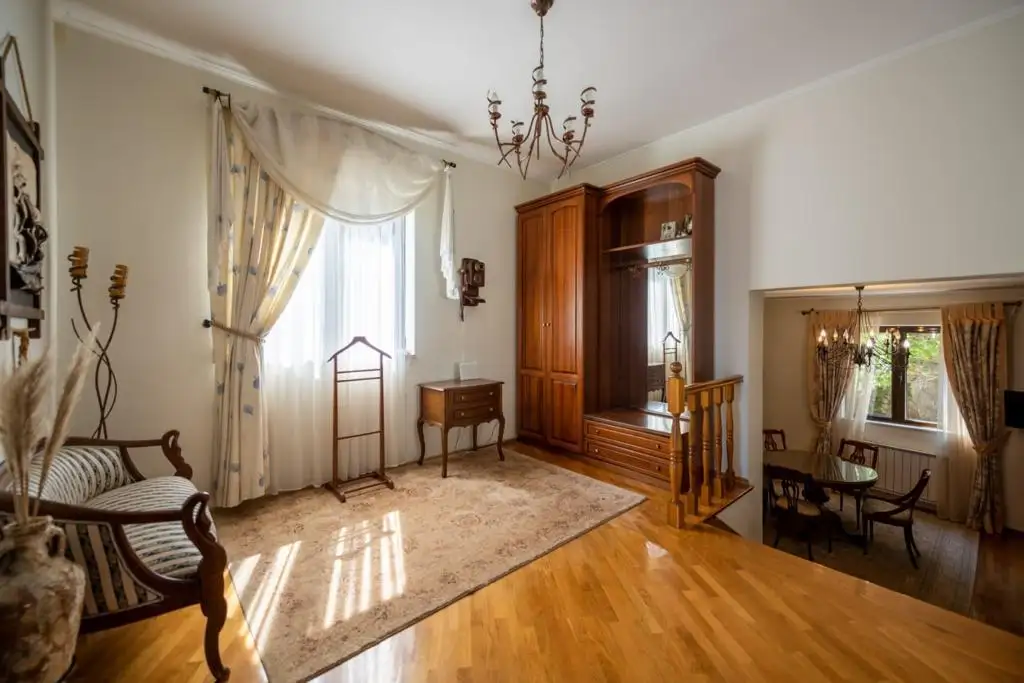 The house has 4 bedrooms, a sauna and a sports hall. The house is fully furnished, equipped with all necessary household appliances and ready for occupancy. Excellent option for living, summer vacation away from noisy discos at sea or for renting out.