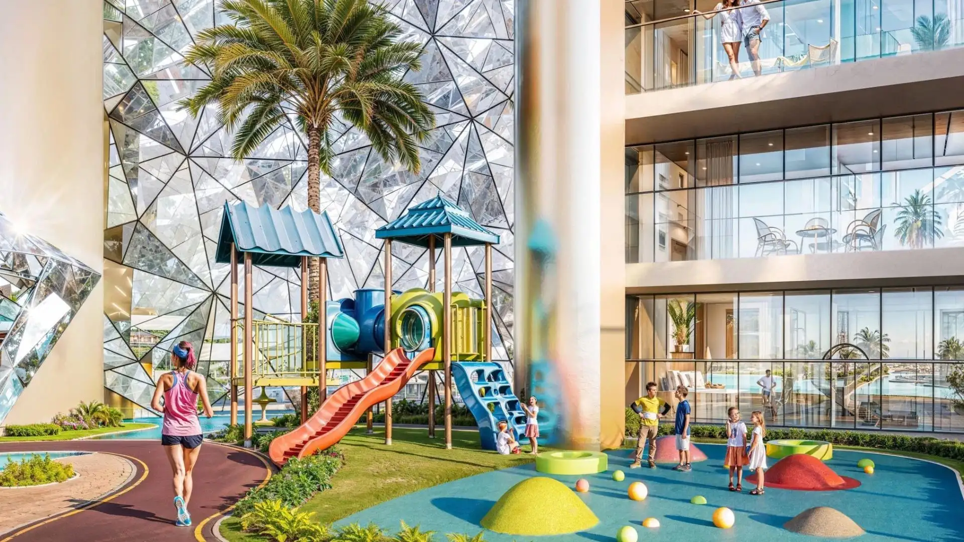 Amenities: pool, jacuzzi, children's playground, basketball court, BBQ area, roller skating park, jogging track, gym, sky golf, yoga area, open-air cinema.