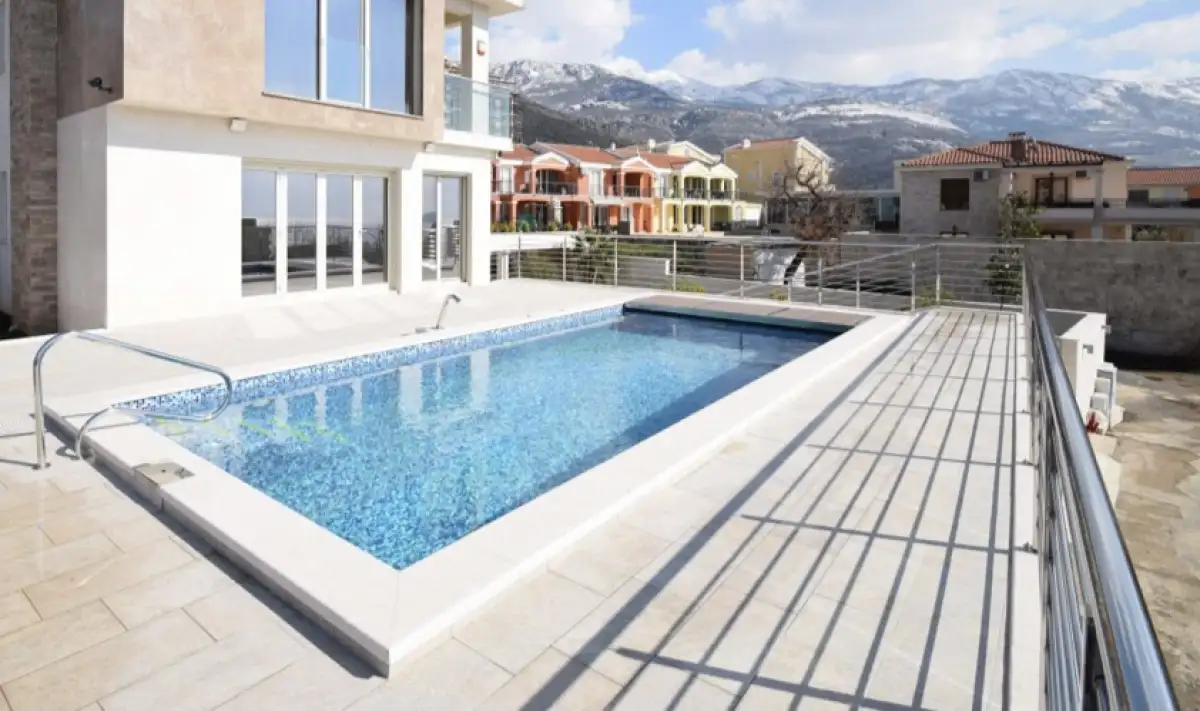 Luxury villa located in Becici, just 5 minutes walk from one of the most beautiful beaches in Europe. Hotels and residential complexes are located nearby. The area of the villa is 400 m2, 4 floors (with an elevator). Layout - 5 bedrooms, 4 bathrooms, spacious living room with kitchen, sauna. The villa is partially furnished. Spacious 650 m2 plot with summer kitchen, parking and swimming pool.