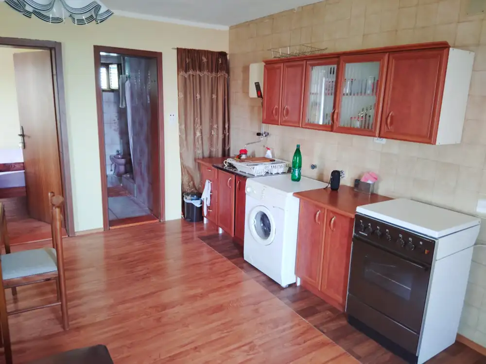 On the first floor there is an apartment consisting of a kitchen with a dining area, an entrance hall, a simple bedroom, a bathroom, a terrace wrapping fruit-bearing kiwis. Technical room.