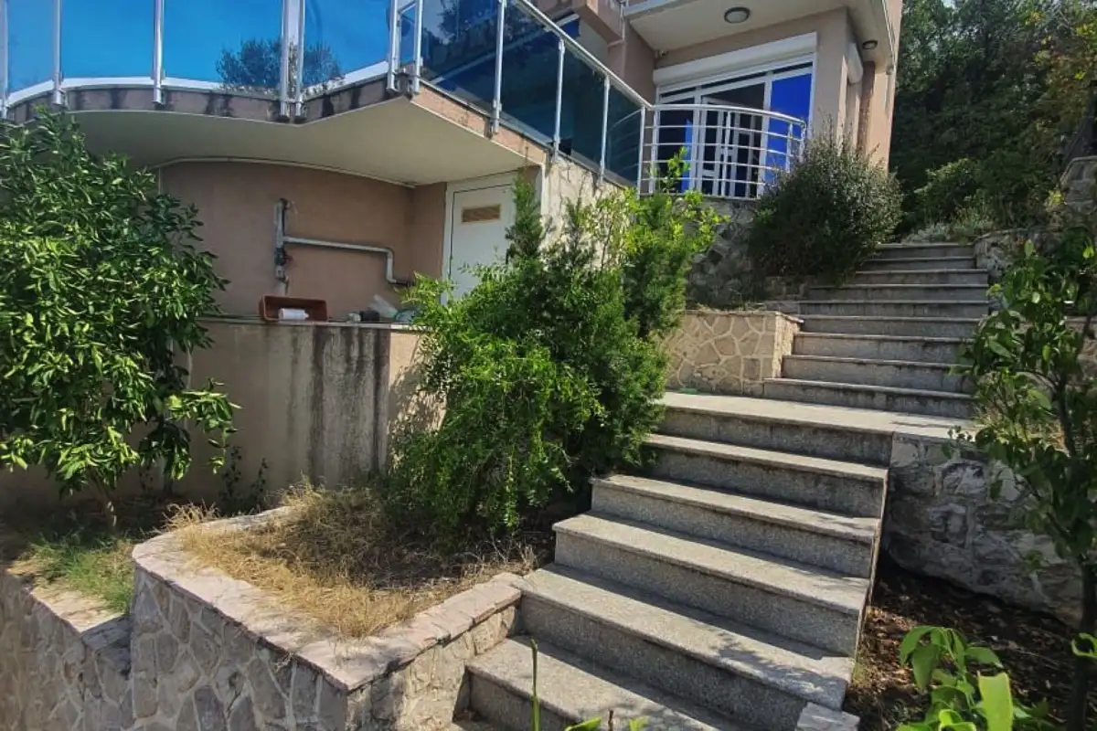 To the sea by air line 350 m, on the way to the central beach 900 m, 2 small bays with small beaches 500 m from the villa