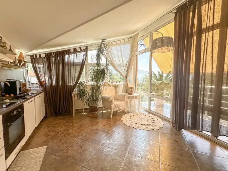2 floor: hallway, two bedrooms, study, separate kitchen, bathroom, terrace with sea view.