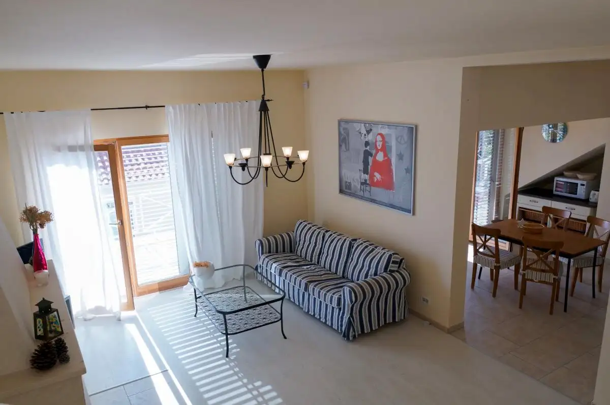 2 floors; 5 bedrooms, living room-kitchen-dining room, 4 bathrooms, 2 large terraces (open and closed), air conditioning on each floor, TV antenna, satellite Internet, German kitchen with dishwasher, stove and oven.