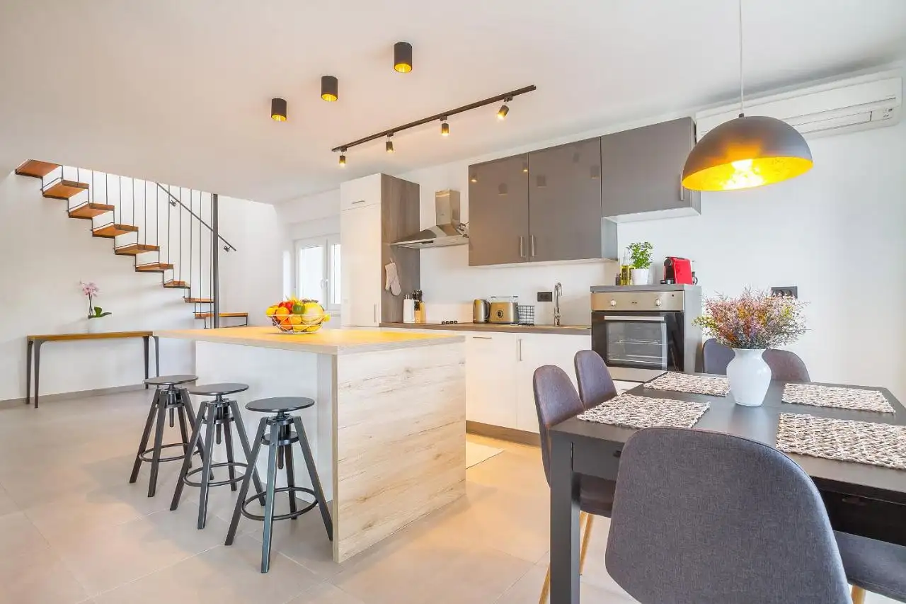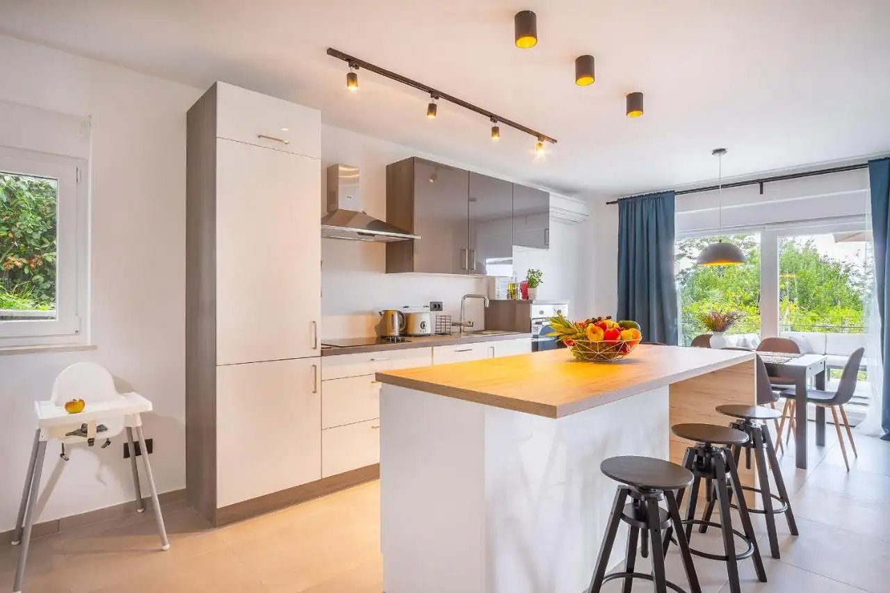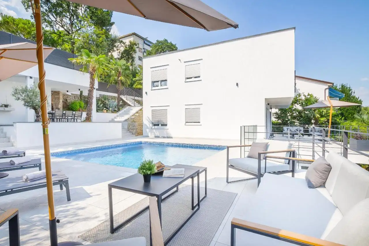Let’s take a look at this five-bedroom, two stories, 200 m2 exclusive modern take on a villa with the most amazing sea view you have ever seen! Originally built in 1968. and newly renovated in 2018. it carries the identity of the local area. Surrounded by amazing architecture, and located in a respectful residential area this is an ideal tropical spot for everyone who is into sleek elegance. Easily reachable by public or private transportation to the city center of Opatija, and being just a few meters away from the first beach this is one of a kind opportunity you don’t want to miss out on. Stunning inside and out, this luxury villa takes you into another world. With an interesting layout and plenty of open space, light, and clean architecture you will feel like you have a piece of paradise at your hand. With all the previously mentioned features, the inside of the house is as well breathtaking as you can assume.