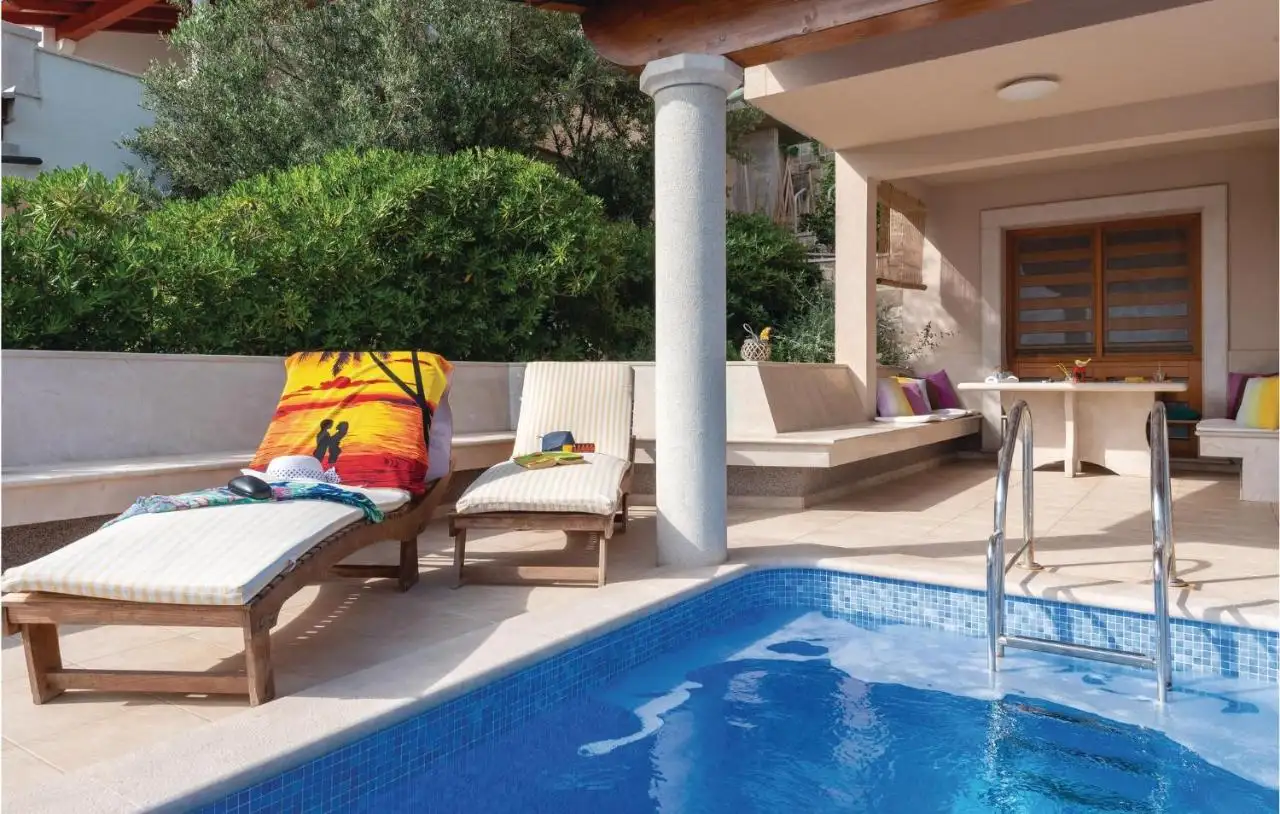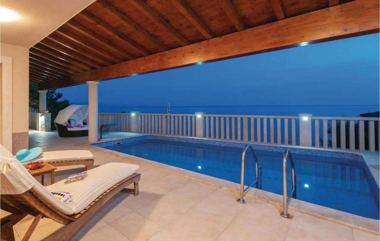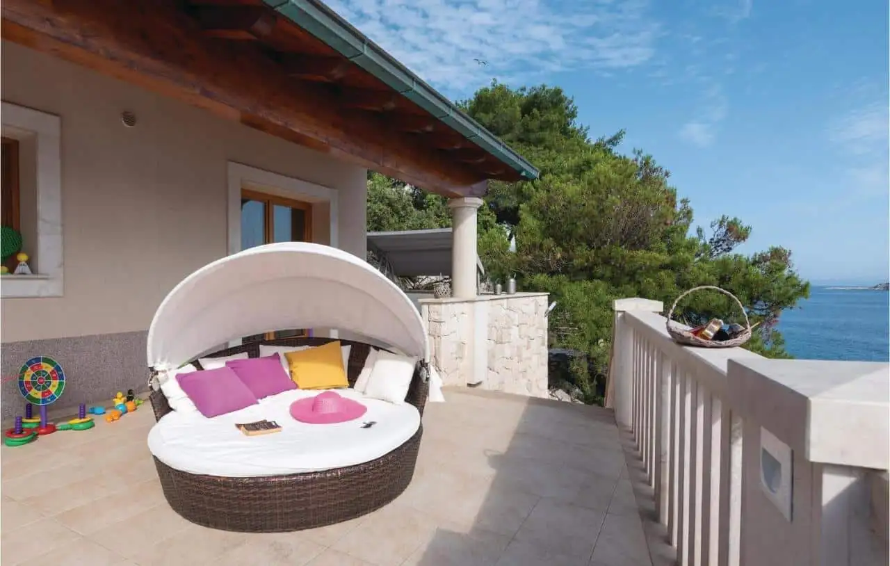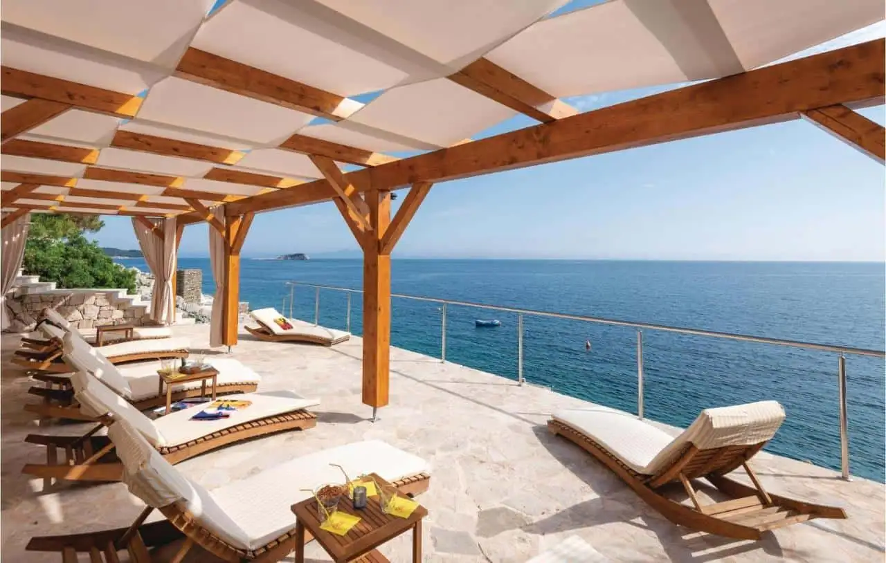Location: KorculaBuilt: 2013Renovated: 2022City center: 5 kmDistance to airport: 80 kmInterior space: 330 m2Plot area: 557 m2Bedrooms: 5Bathrooms: 5Pool: 21 m2Parking: 6Air conditioningGymSaunaPatioChildren's playgroundGarden