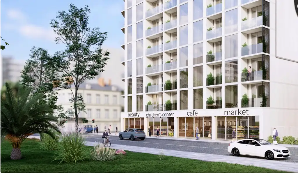 In the yard will be organized children's playground, on the 1st floor of the room for the store, gym, etc. Underground parking for residents.