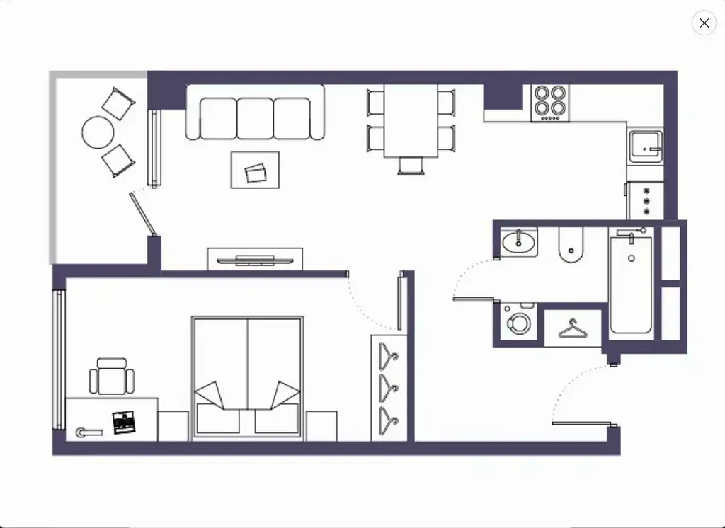 Apartment with a 1 bedroom area of 44 sq.m. on the 27th floor in a ready-made complex and the possibility...