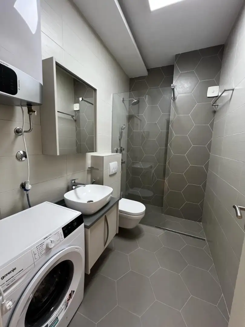 A panoramic penthouse with 2 bedrooms is for sale in a new residential complex with a pool, spa, and restaurant on the premises, located in the Bay of Kotor, in the village of Dobrota. The village stretches for several kilometers along the picturesque coastline, from the ancient city of Kotor to the village of Ljuta, and is rightly considered one of the most beautiful settlements in the Bay of Kotor. The complex has an excellent location: a quiet, peaceful area, just a 5-minute walk to the nearest beach, and all the necessary infrastructure for comfortable living is nearby. The terrace offers a wonderful view of the sea. Area: 108 m² Floor: 6 (the building has an elevator) Apartment layout: - hallway, - living room with kitchen and dining areas, - 2 bedrooms, - 2 bathrooms, - terrace (stunning sea view) The apartment is fully furnished, equipped with all necessary appliances, and ready for occupancy. It is an excellent option for living, summer vacations by the sea, or as an investment for rental purposes.