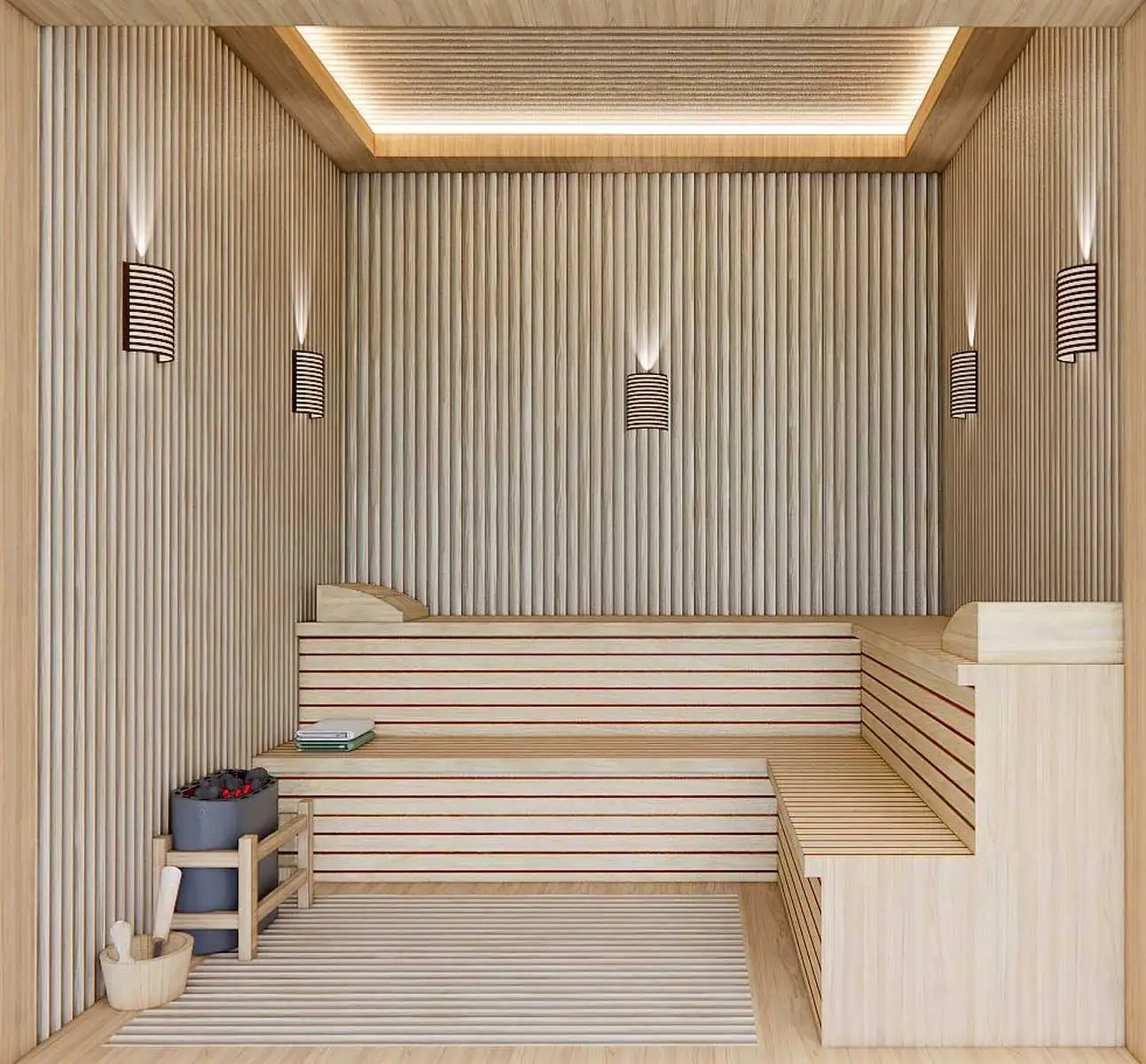 Residents and guests of the complex are offered the following amenities: a fitness hall with modern equipment, a sauna with a winter pool, outdoor recreation areas, a playground, as well as spacious parking. The entrance to the residential building of the complex will be through the lobby, where there will be places for recreation with Wi-FI.
