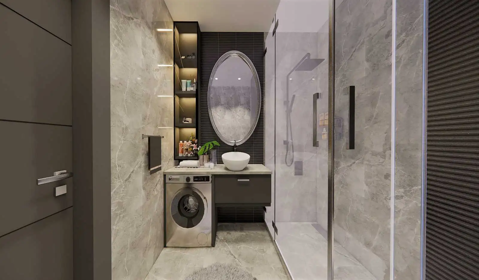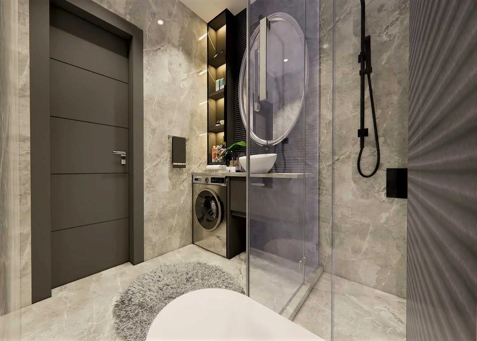 All apartments will be delivered with turnkey finishes, with fully equipped plumbing and furniture bathroom. In the dressing area, a wardrobe will be installed, and in the kitchen area - kitchen furniture and a granite countertop with plumbing. ;