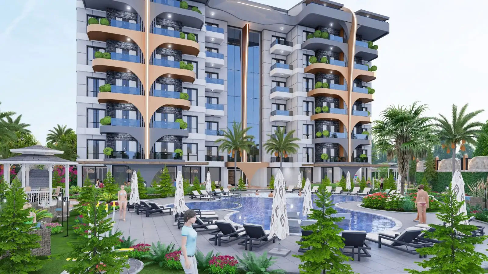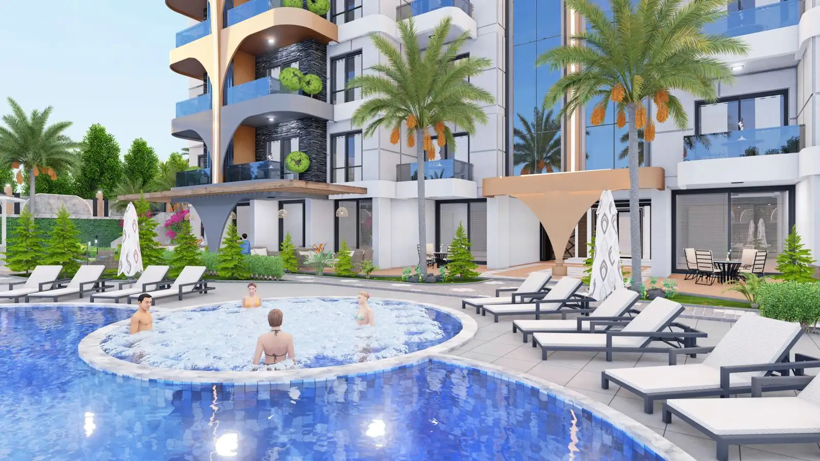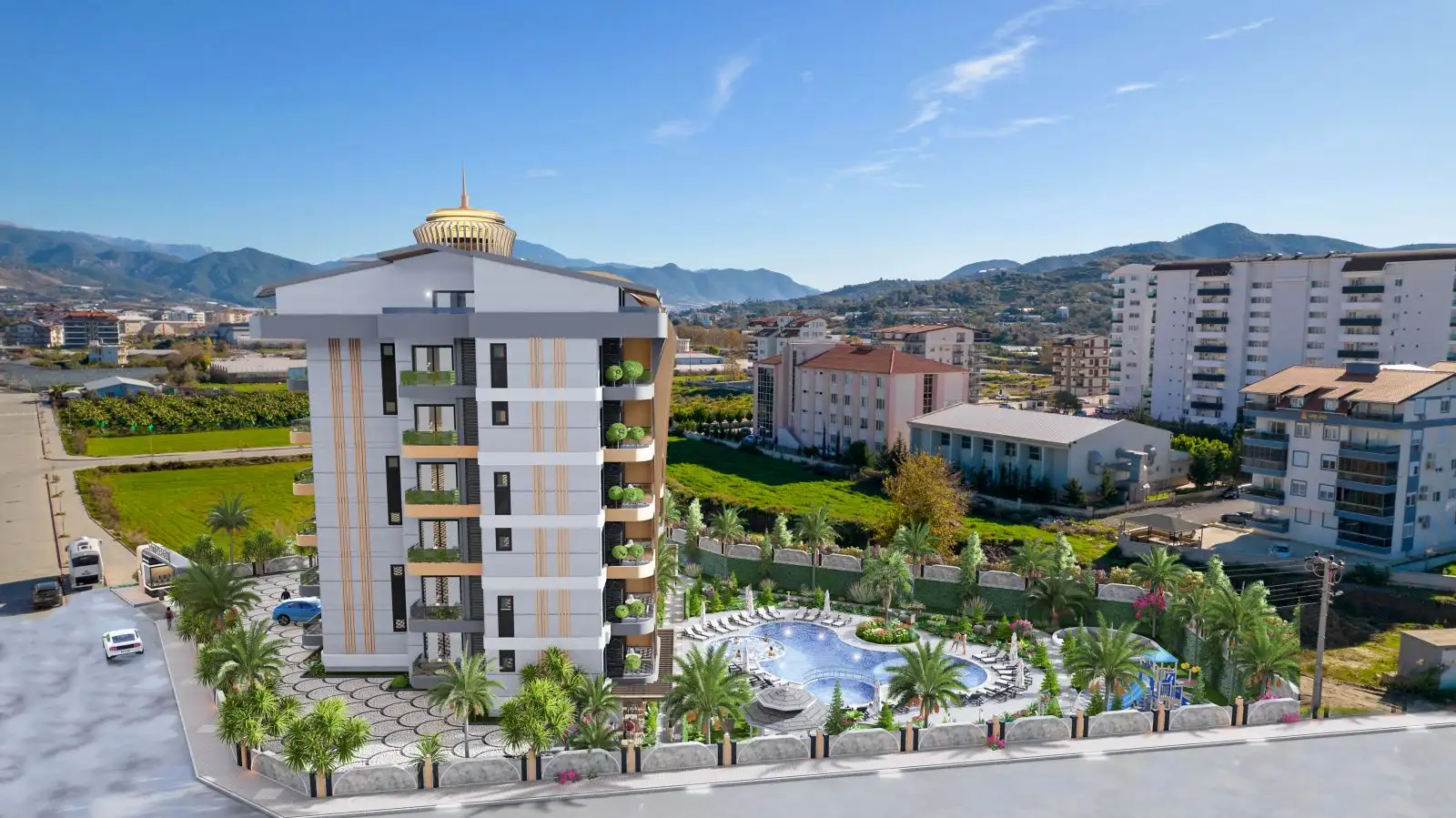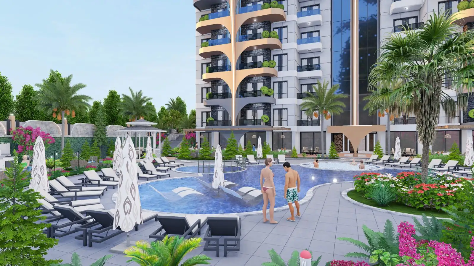 What's in the complex: In a closed area with infrastructure built one of the most beautiful residential projects in Gazipaş, designed in a modern architectural style. The complex will be distinguished by an abundance of places for recreation and a developed internal infrastructure. Guests and residents of the complex will be provided with: an outdoor pool, arbors for recreation, a gym, a sauna, a hamam, a children's playroom, a street sports ground, a cinema, a cafe, a room for games, parking and much more, which will allow you to spend time in the complex with fun and comfort.
