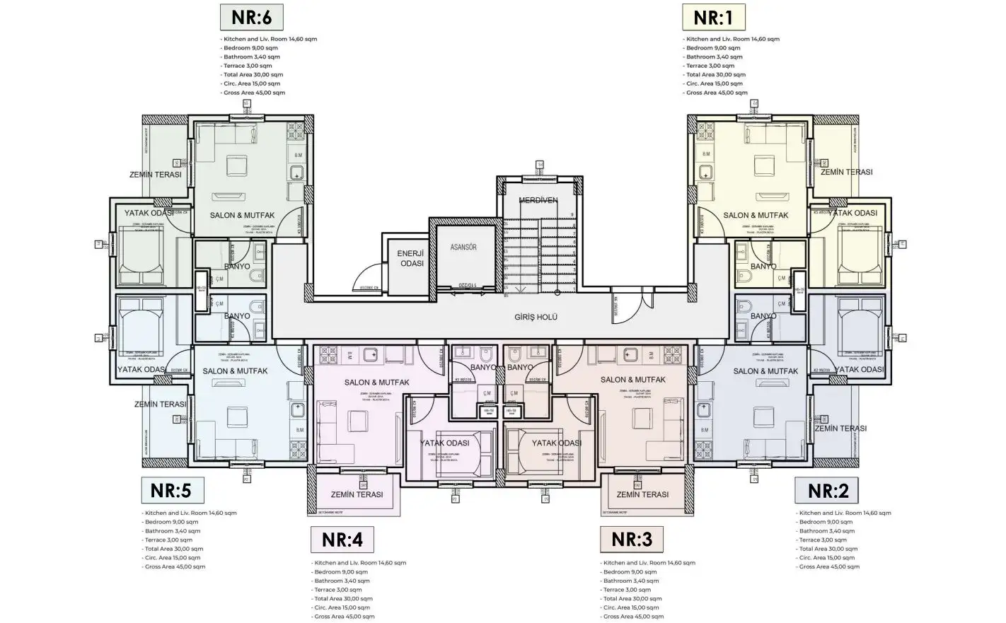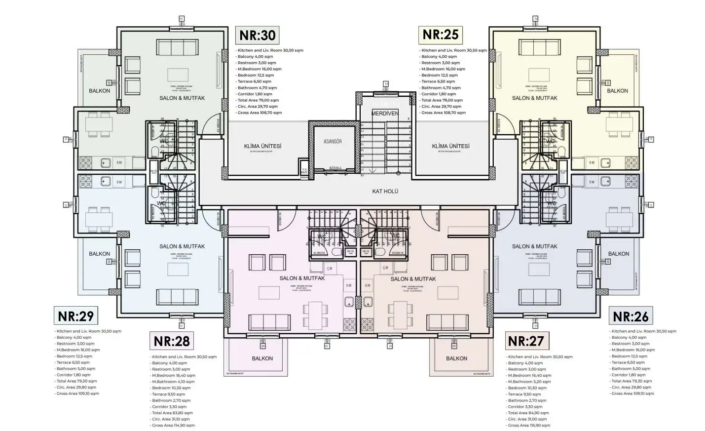 penthouses 2 + 1 with living space from 108 to 116 m2.