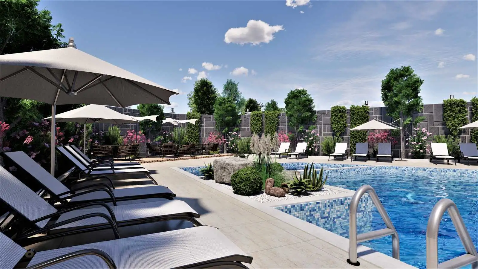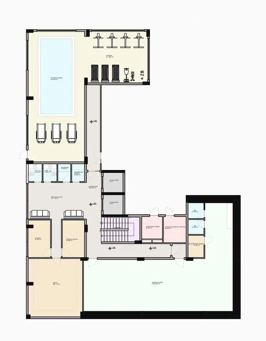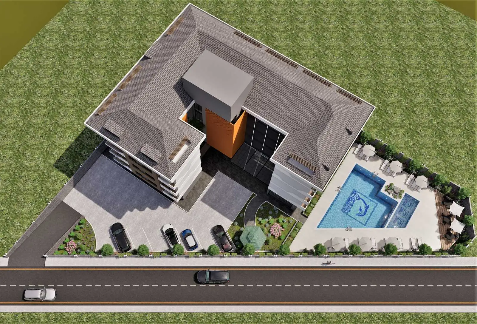 The complex will develop internal infrastructure, there will be a modern sports hall with sauna, hammam and steam room, a winter pool, as well as a spacious lobby with places for recreation. On the local territory there will be a garden with places for recreation, a gazebo, a swimming pool and a terrace for sunbathing. The complex will have its own parking lot.
