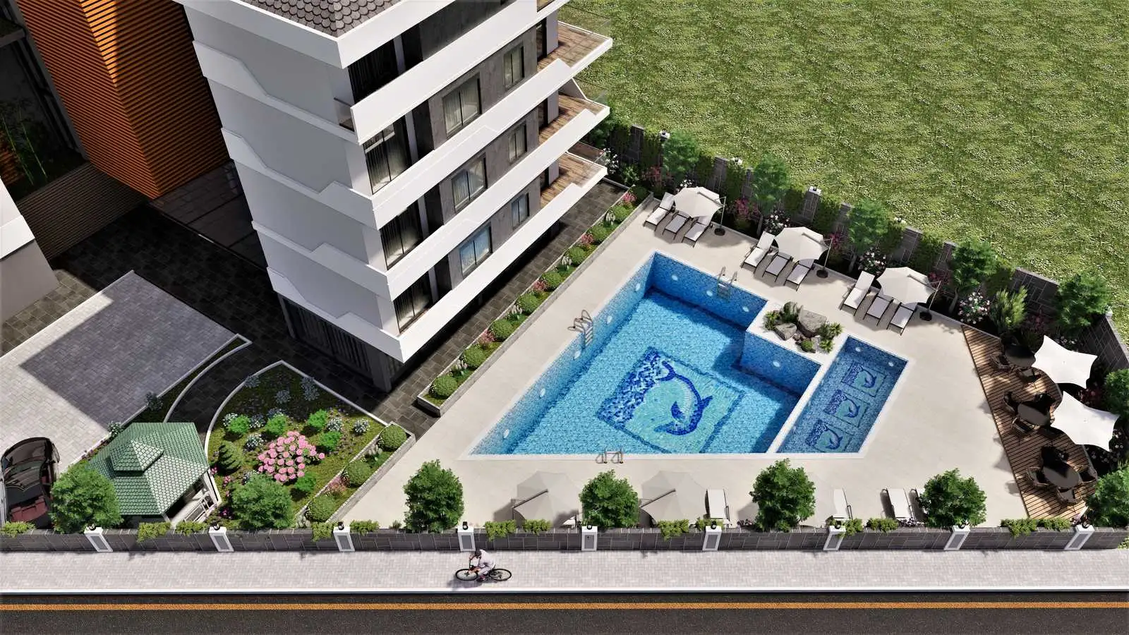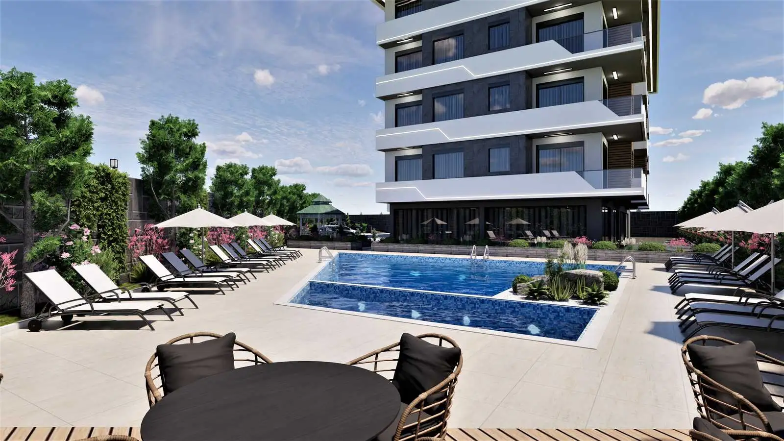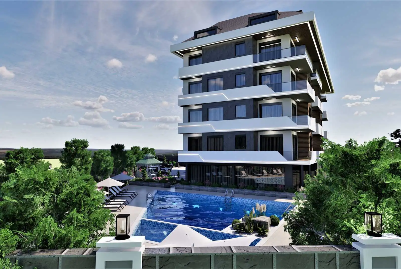 What's next? A modern residence is being built in a quiet residential area of Oba, away from the hustle and bustle of tourism, near important social facilities such as city and private schools, a public hospital, an ophthalmic center, a shopping center.