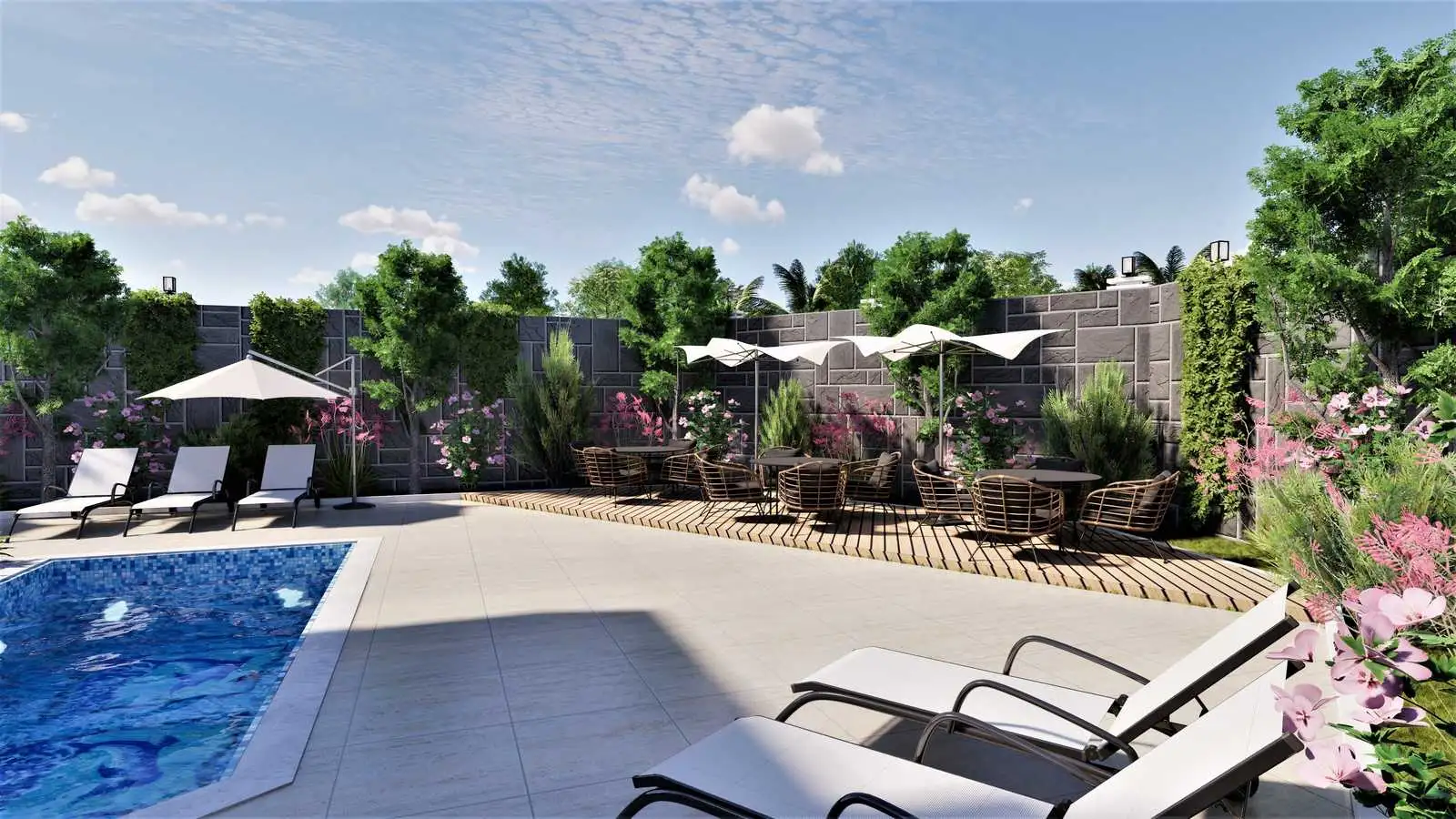 Who might be interested: We offer a comfortable and peaceful life in a green area with clean air, in a complex with a developed internal infrastructure, just three kilometers from the tourist center of Alanya. There are educational institutions, a shooting club and sports grounds in the area, which makes it attractive for families with children.