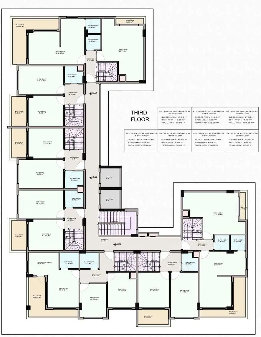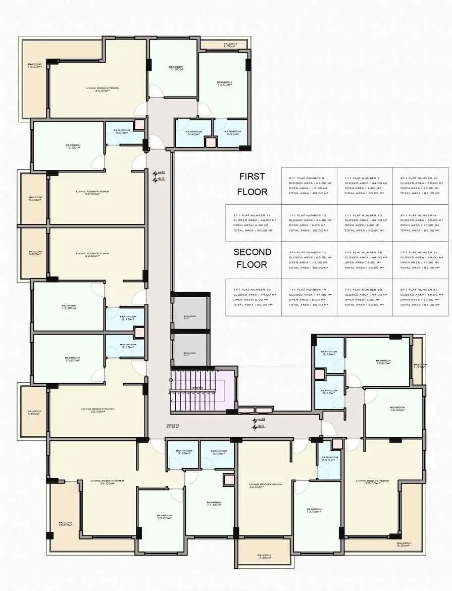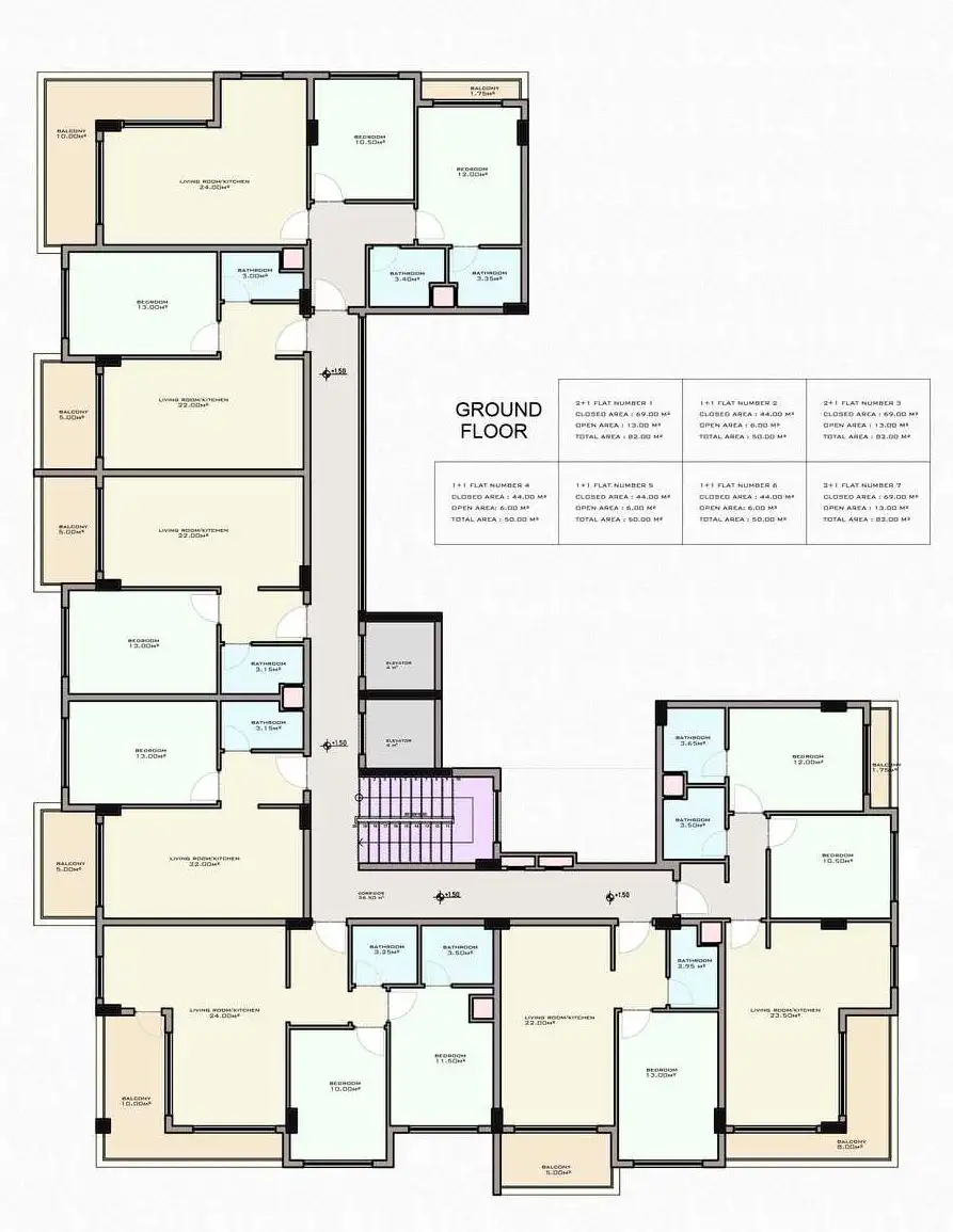 Apartments 2+1, with an area of 82 m2;