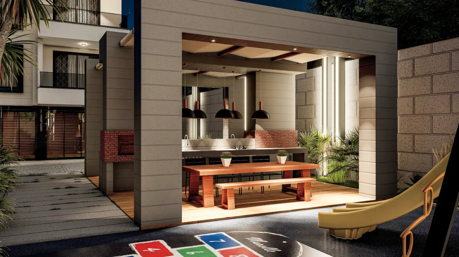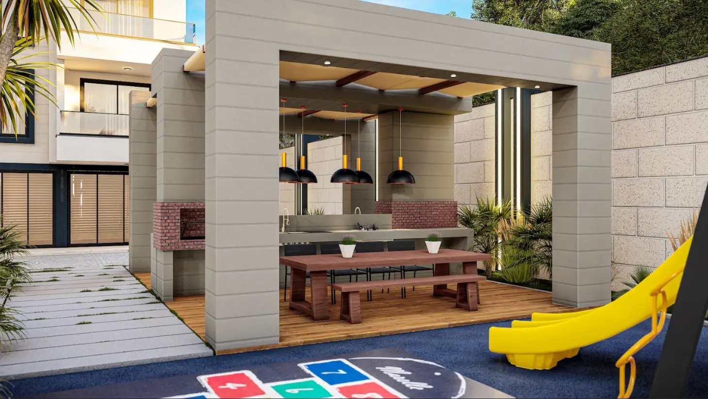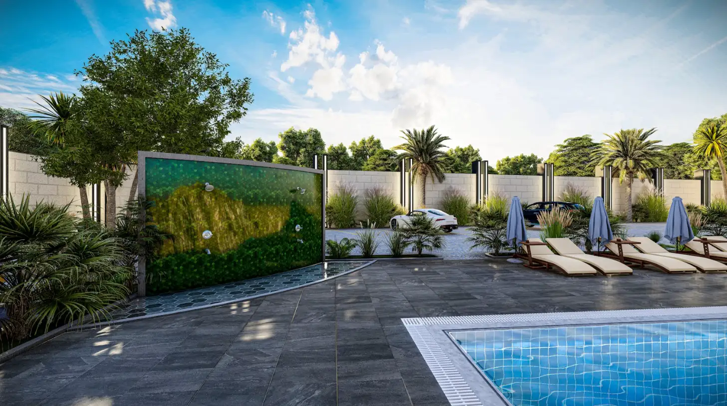 What's in the complex: On a closed, landscaped area of 3,042 m2, there will be one residential block, an outdoor pool with water slides, a children's pool, a recreation area by the pool, a playground, arbors for recreation, a recreation area and a barbecue, a mini club, a Finnish sauna, fitness, open parking, a generator.