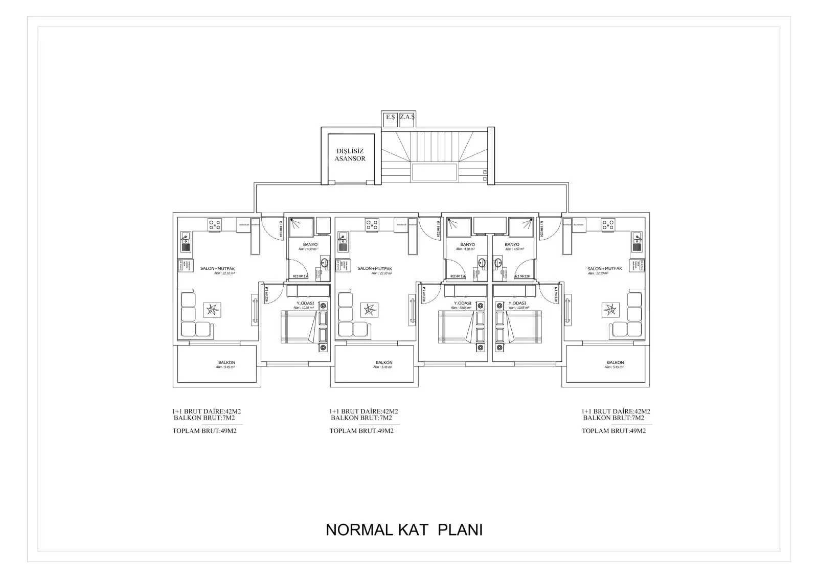 Apartments 1+1, with an area of 52 m2;
