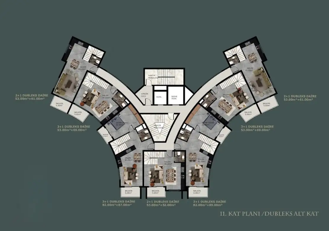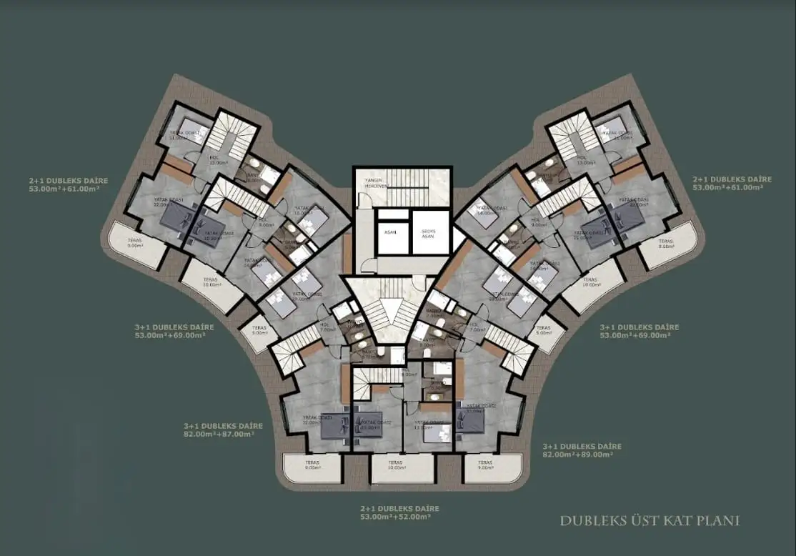 Penthouses 2+1 and 3+1 with an area of 105 m2