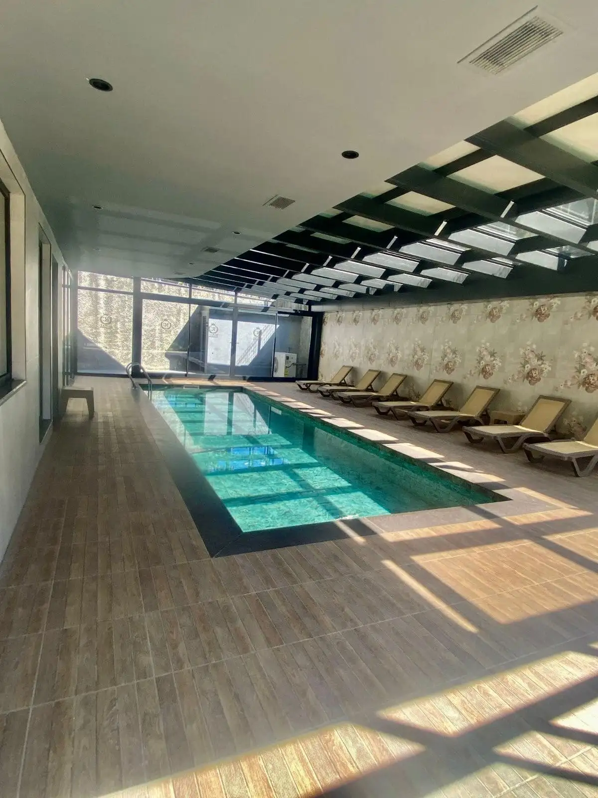 What's in the complex: The complex itself is made at the level of a premium hotel: there is an outdoor pool, and an indoor heated, cozy lobby area, a place for relaxation, a large fitness room, a sauna and a hammam. The territory is well maintained, the entrance is carried out by code, round-the-clock video surveillance is conducted, a generator is installed. The building is new, high-quality and well maintained by the management company.