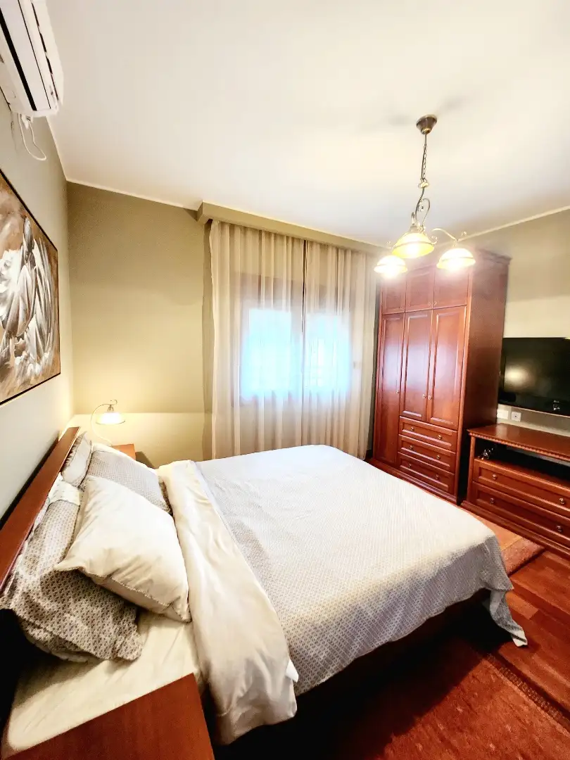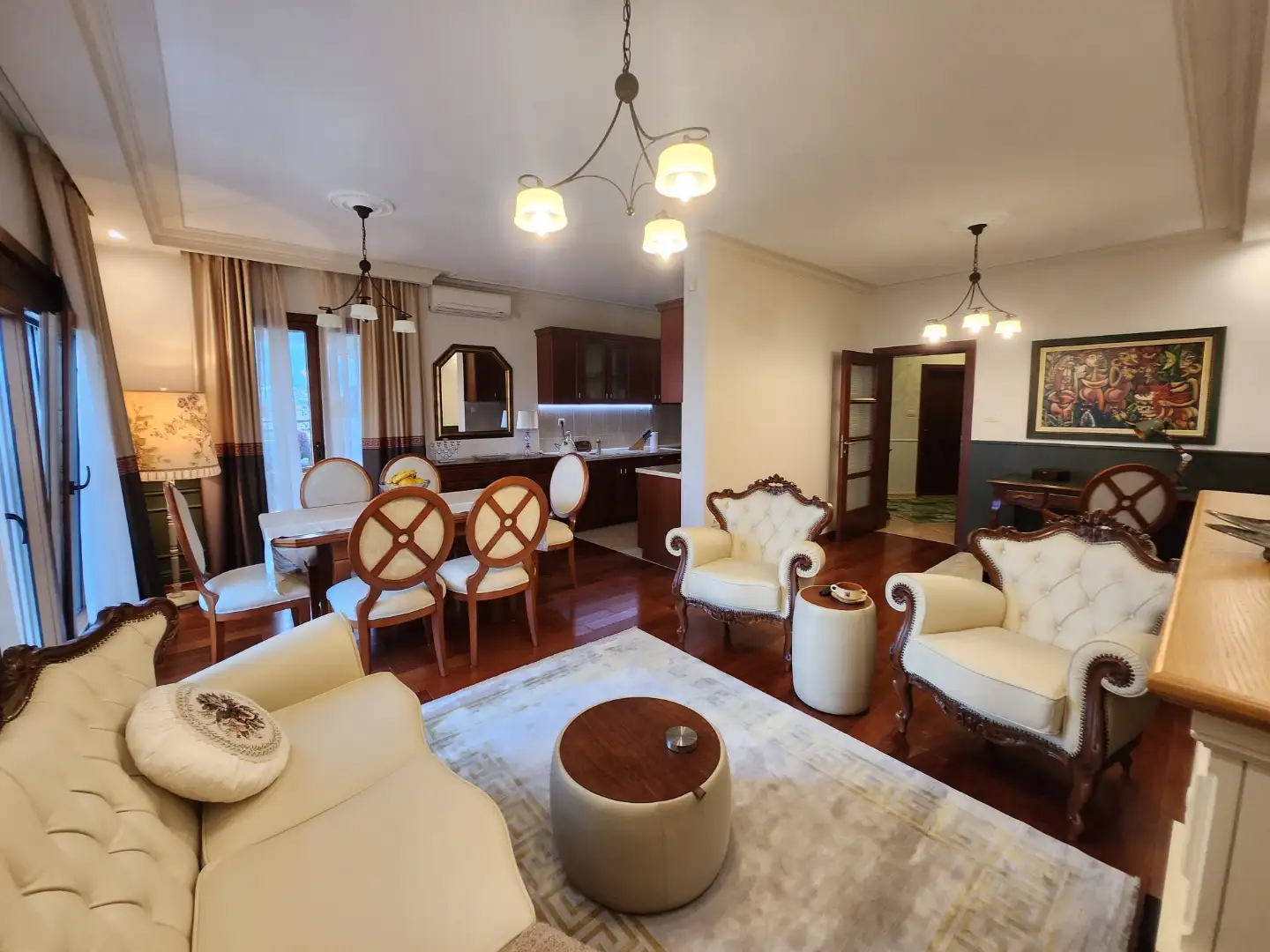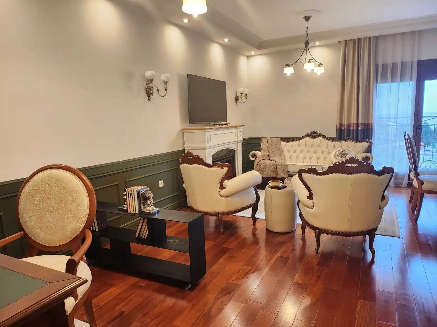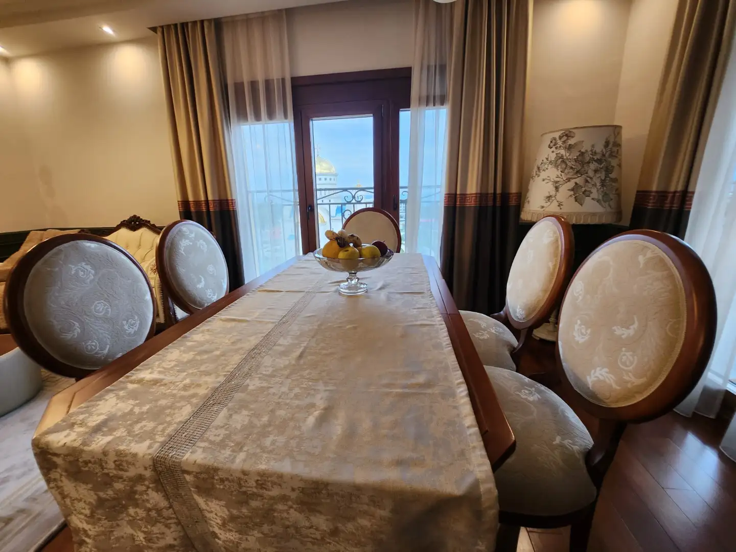Apartment in the center of Bar, area 104m2. Structure: spacious corridor, living room, separate kitchen, two bathrooms, two bedrooms, terrace. The windows of the living room and terrace offer magnificent views of the sea and the temple. The apartment was renovated in March 2023, with new furniture and appliances. 250 meters to the sea. Grocery store 200 meters away. 100 meters to school. Price: 485,000.00 euros.