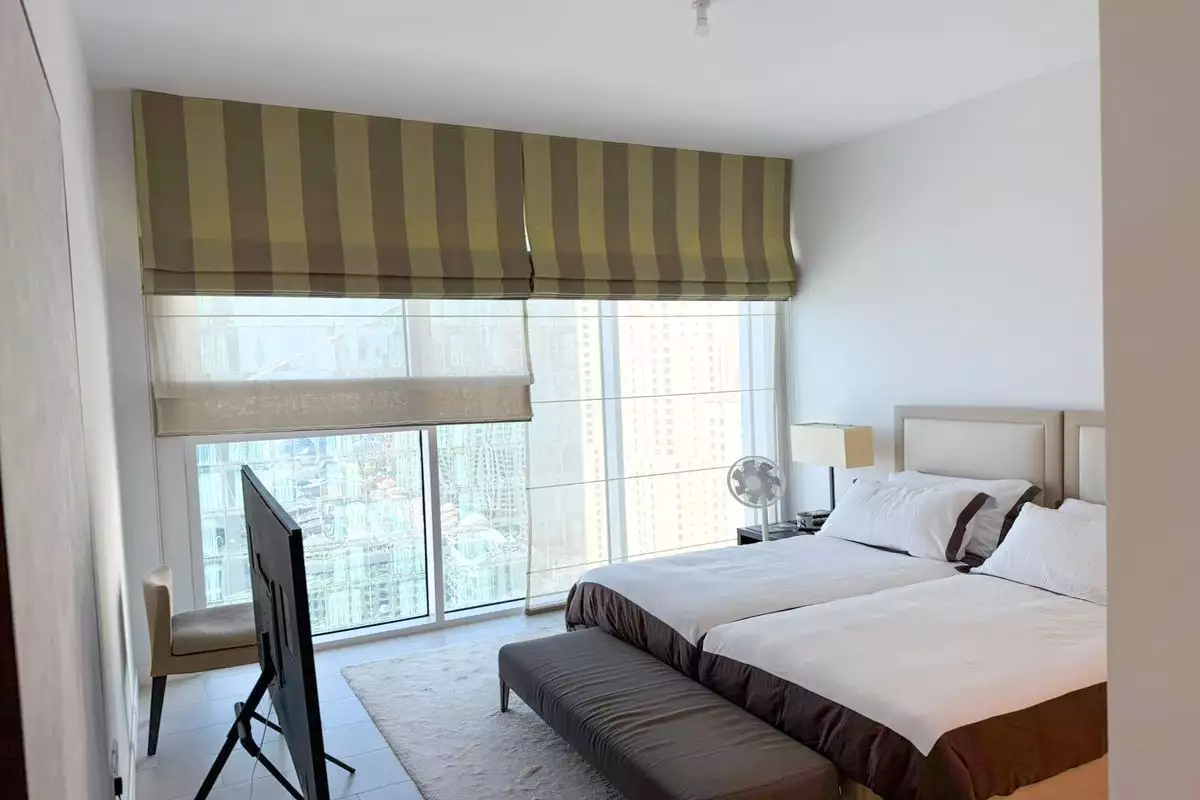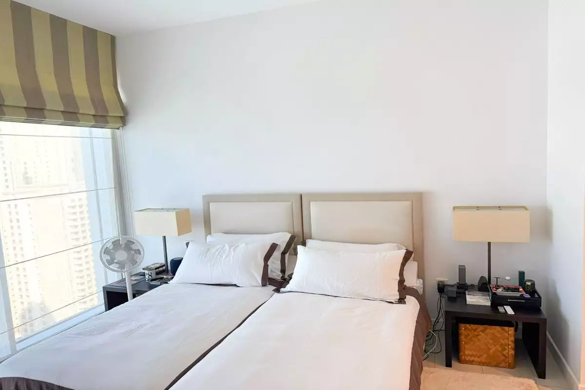 The apartment features two generously sized bedrooms, often designed to emphasize comfort and aesthetics.