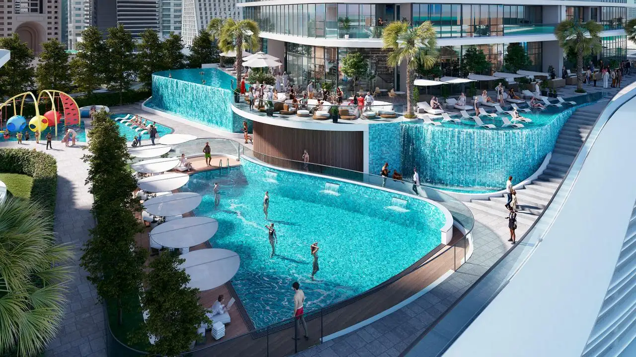 Amenities: spacious infinity pool with stunning harbor views, health club with sauna and steam room, yoga, meditation and aerobic exercise areas, walking and jogging track, skate park, children's pool, kids playroom, indoor and outdoor play areas, family BBQ area, open-air cinema, multipurpose hall; club lounge with service, pet zone.