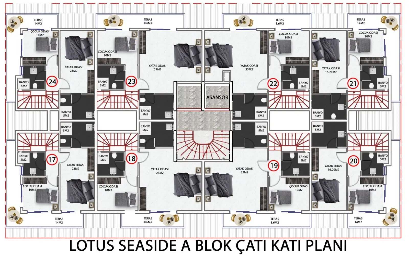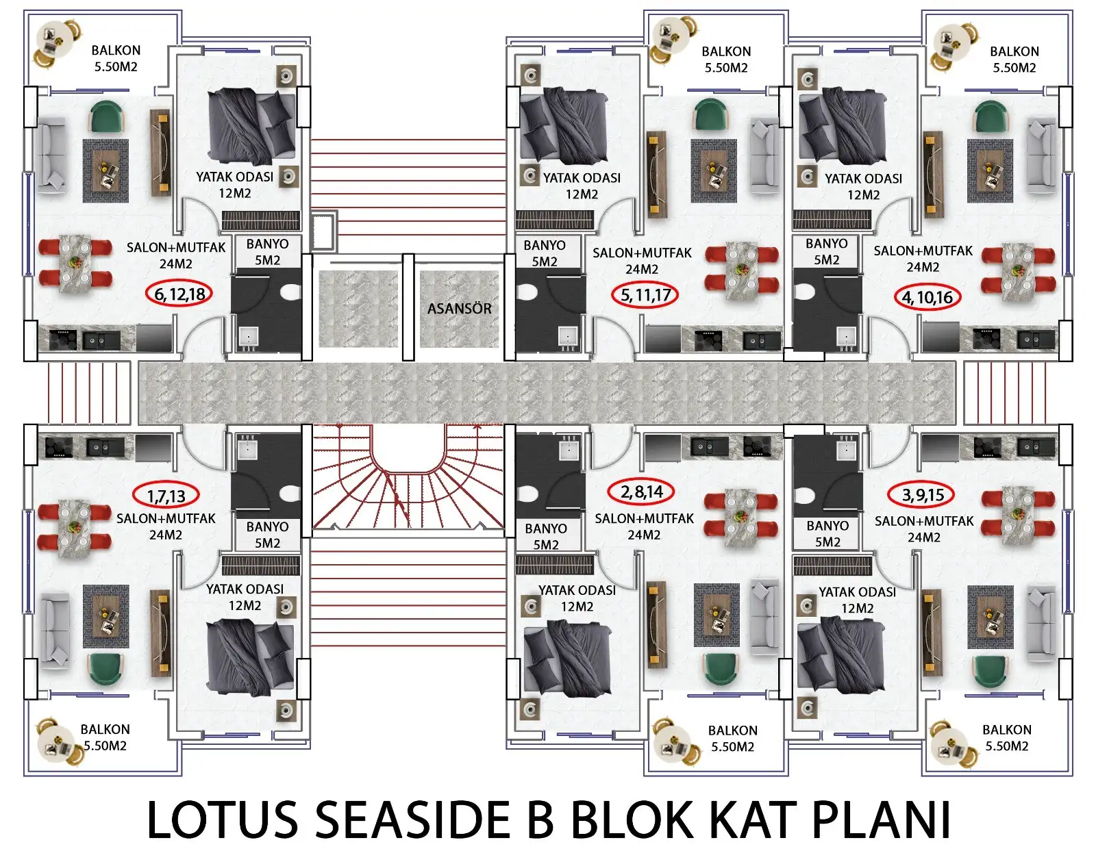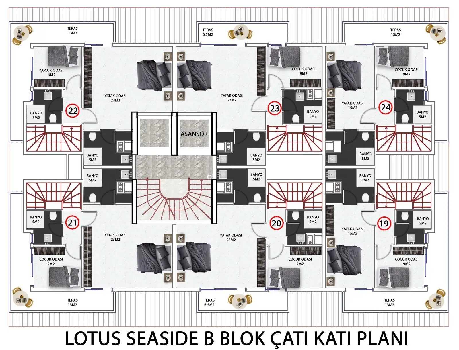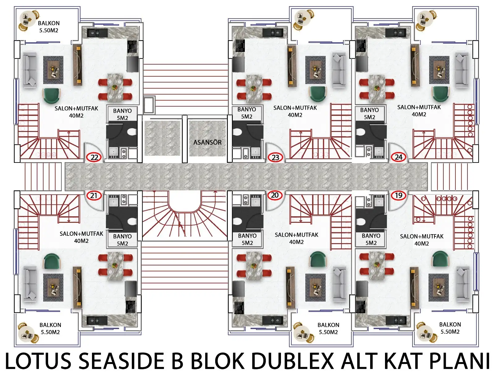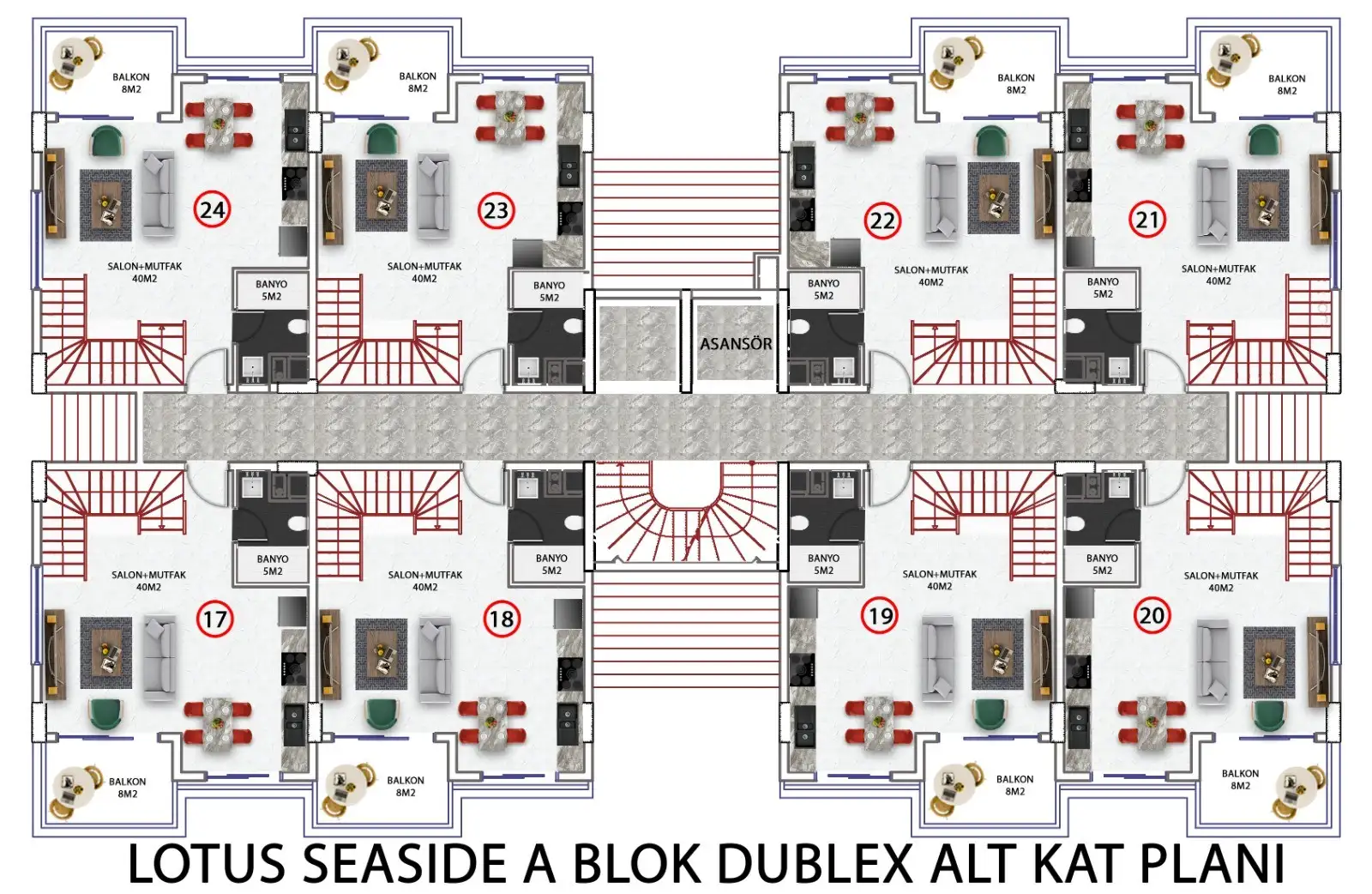 What you get: Apartments in a new modern complex in Okurdjallar neighborhood. About the construction: Start of construction September 2022, and completion is planned for 2024. The down payment is 40% and there is an interest free installment until the end of construction. Area/beach: Okurdjalar is a quiet, resort area 35 km from the center of Alanya and 75 km from Gazipasa airport. Here are beautiful, clean beaches, quiet atmosphere of relaxation and beautiful nature.What's nearby: Just 100 meters from the complex is the Mediterranean Sea, and in the central part of the area there is a large indoor market, shopping center, food and clothing market 2 times a week, bus stops.What is in the complex: On the closed territory of 2 460 m2 is located two blocks, fitness room, outdoor swimming pool, hammam, Finnish sauna, children's playground, parking, electric generator.Inside: The complex has 48 apartments.
