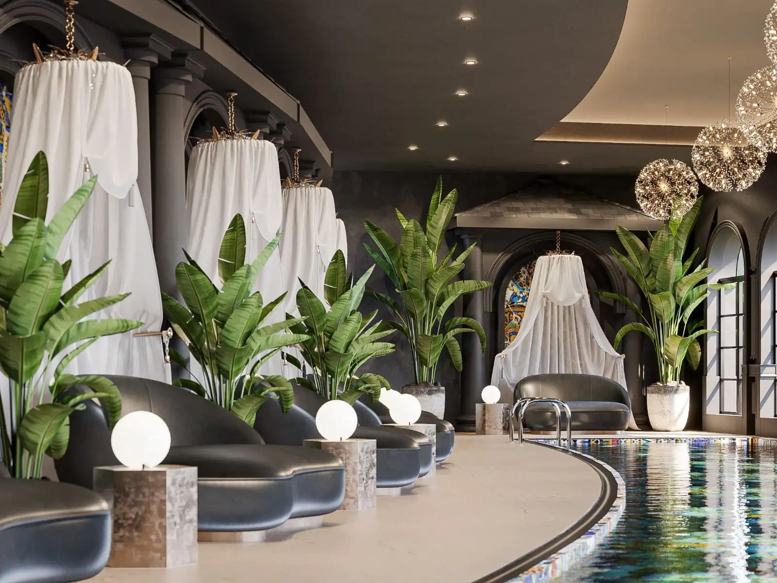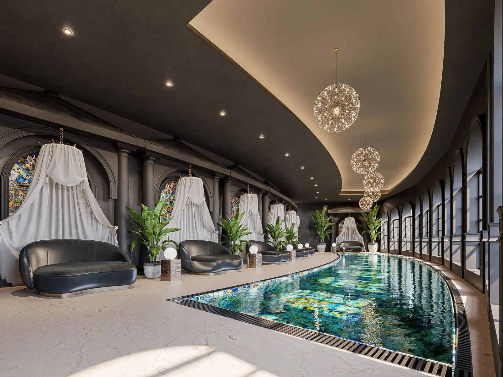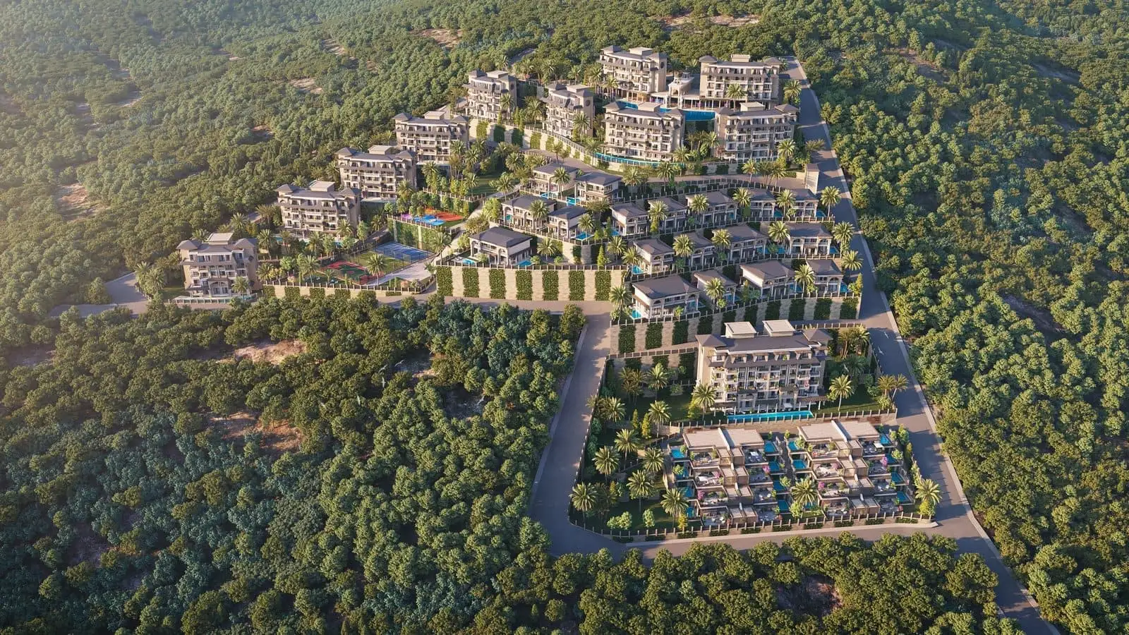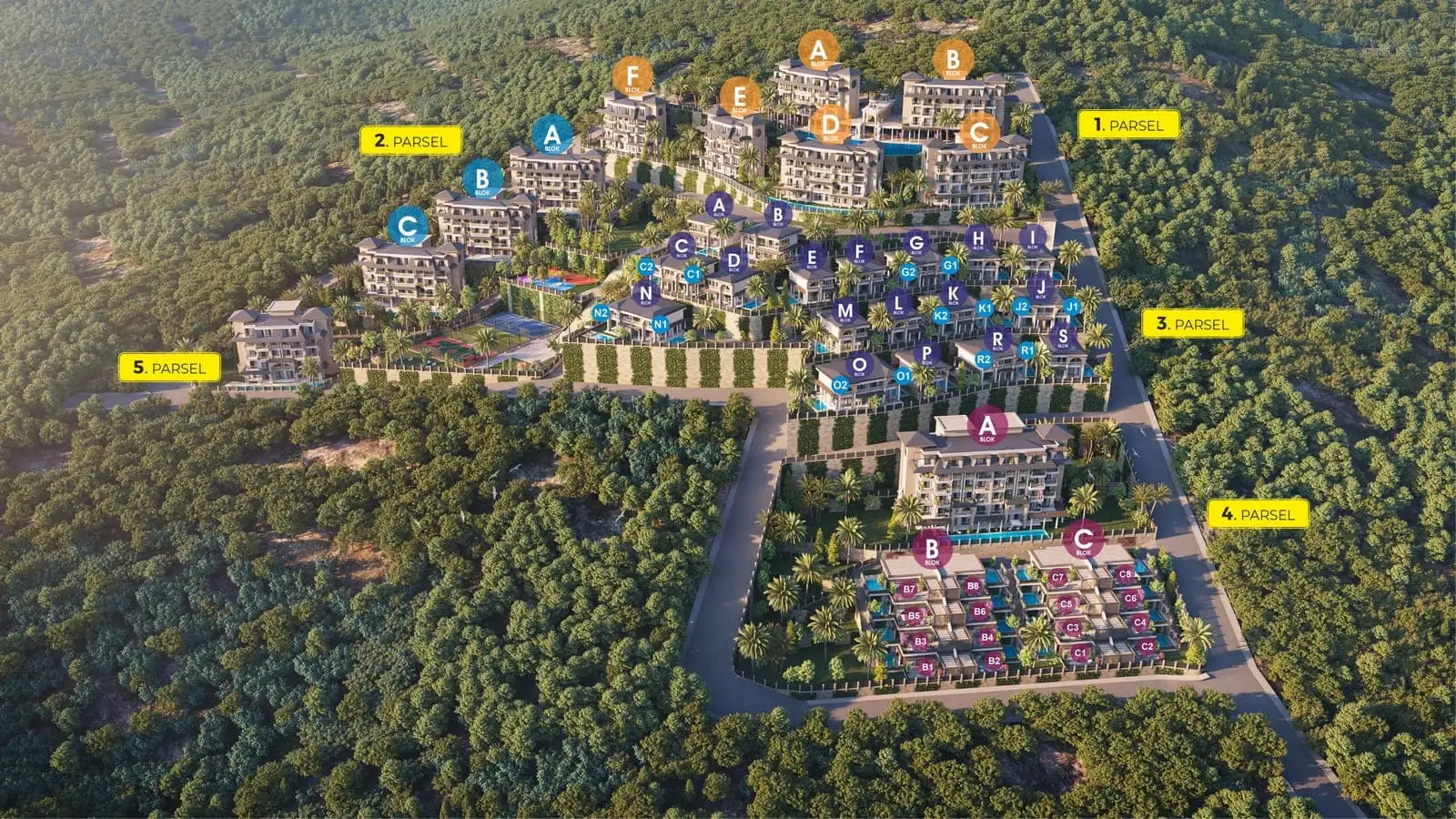 What is nearby: The complex will be located three kilometers from the Mediterranean Sea in an elite area, surrounded by forests and olive gardens. Developed road infrastructure with minimal traffic allows you to comfortably get from the complex to any place on the Alanya coast. The concept of building the complex is based on scale, complexes