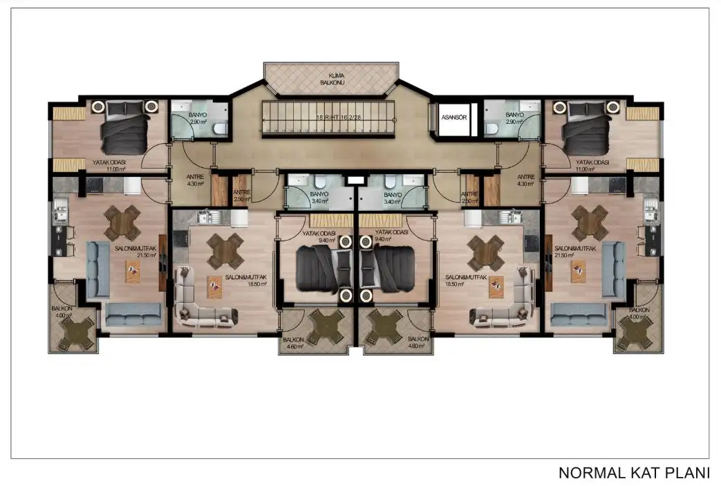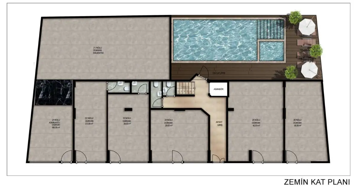 What is nearby: The new complex will be located in the heart of sunny Alanya, on a busy boulevard, surrounded by boutiques, restaurants and cafes. Spa-salons, fitness centers, clinics, parks, as well as the Mediterranean Sea in walking distance guarantee an excellent pastime at any time of the year. What is in the complex: The new complex, designed taking into account all the needs of the urban dweller, combines convenience, comfort and cozy luxury. One residential building of the complex will house 20 apartments, as well as 6 shops, which will be located on the first floor of the building. ;