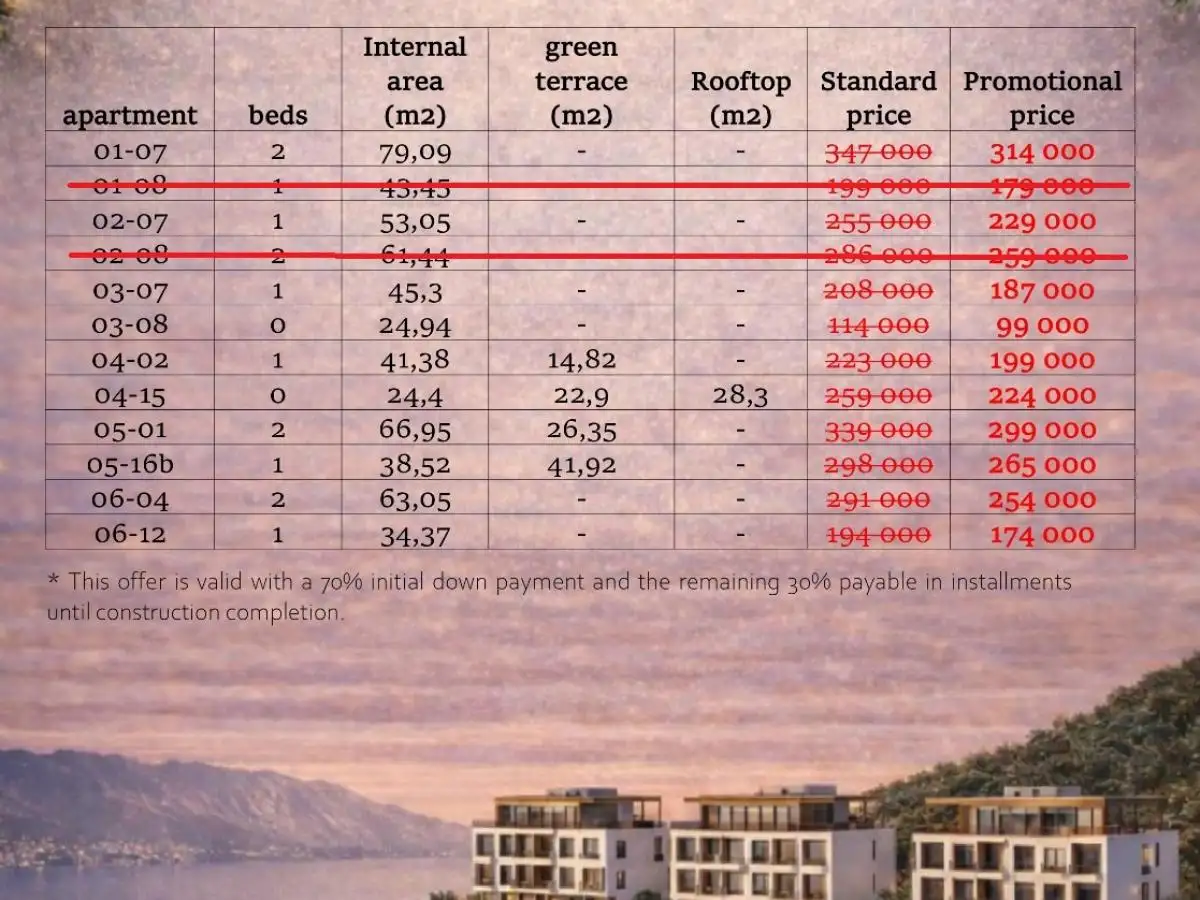 An individual payment scheme is possible with a down payment of 20% and an installment plan of up to 5 years