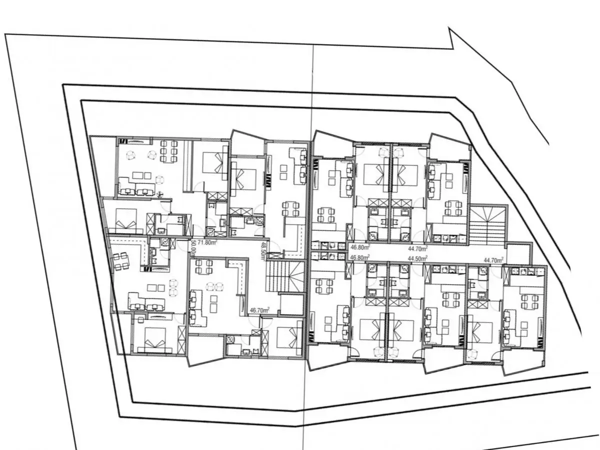5 floors, a total of 45 apartments in the complex, 2 elevators and underground parking for 50 cars