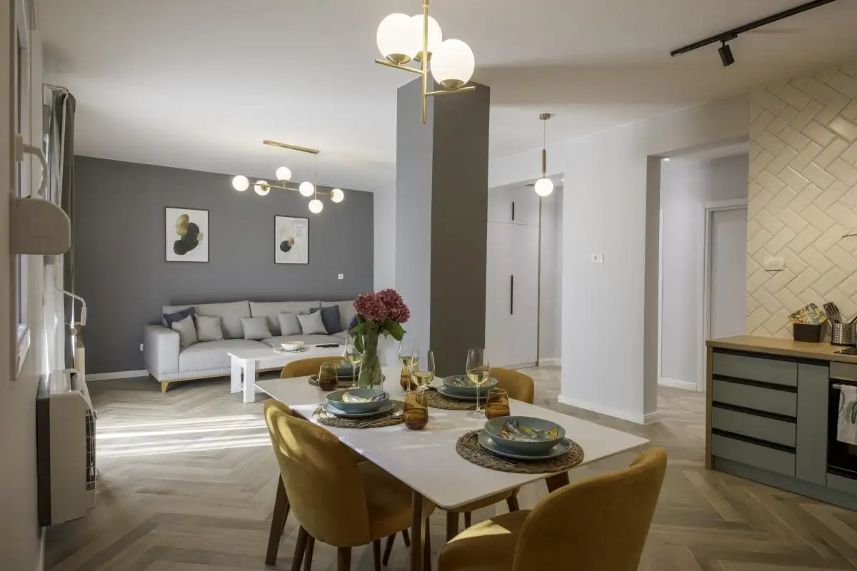 Apartment with new modern renovation - warm floors, split system, new appliances and furniture.
