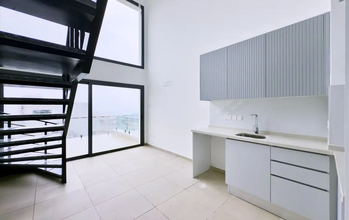 A two-bedroom apartment with stunning direct sea views. The apartments are built in a two-story loft style. On the lower floor, there is a living room, kitchen, and bedroom with a bathroom. And on the upper floor, there is a bedroom with panoramic windows. These windows saturate the entire room with light and warmth.
