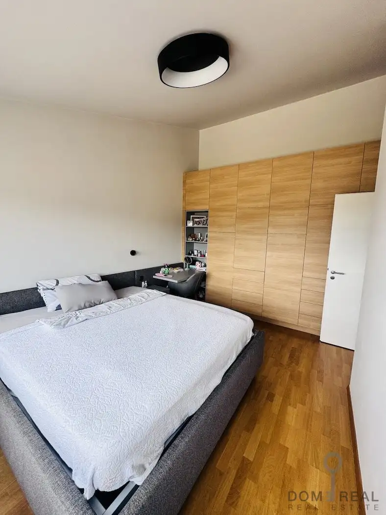 The apartment has three spacious bedrooms, perfectly equipped bathrooms, a pantry and two parking spaces for the owner. The interior is custom made and designed by an interior designer, which gives the apartment a special character and a high aesthetic level. Heating is carried out by a heat pump, and all rooms are equipped with air conditioning, which ensures comfortable living all year round.
