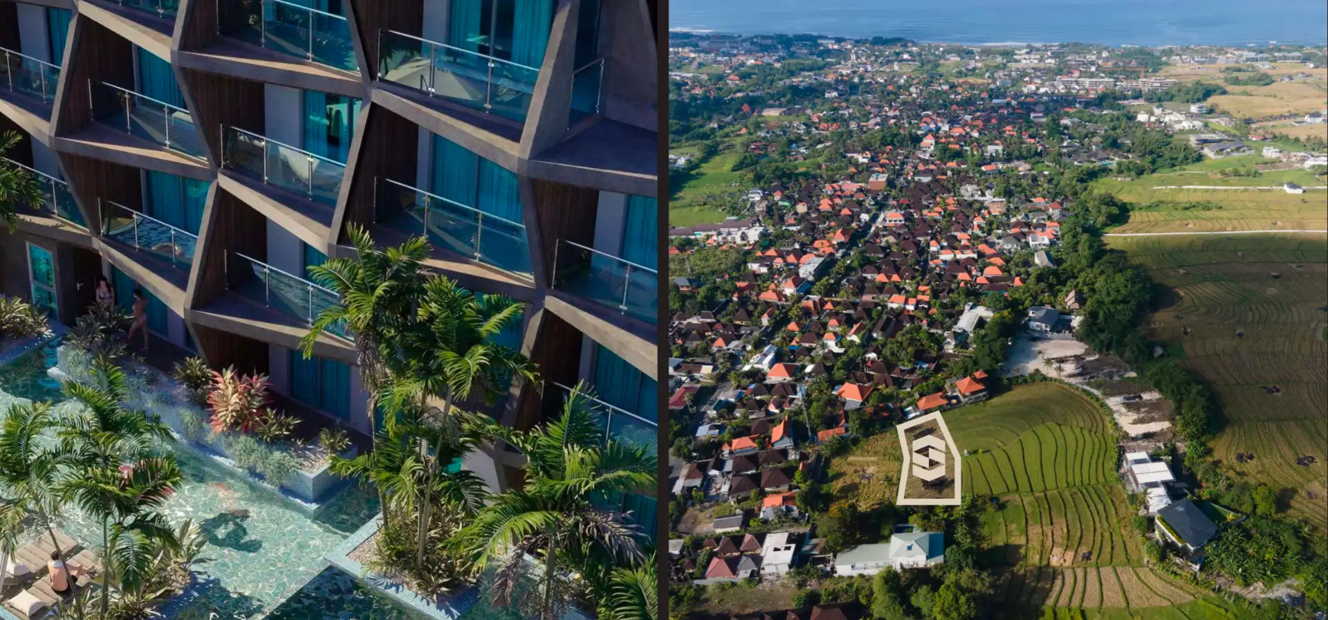 The complex is located on a picturesque plot of 1,140 square meters in the heart of the Pererenan district. Guaranteed views of the rice paddies and proximity to the modern infrastructure of the area make our complex unique for both living and investment.