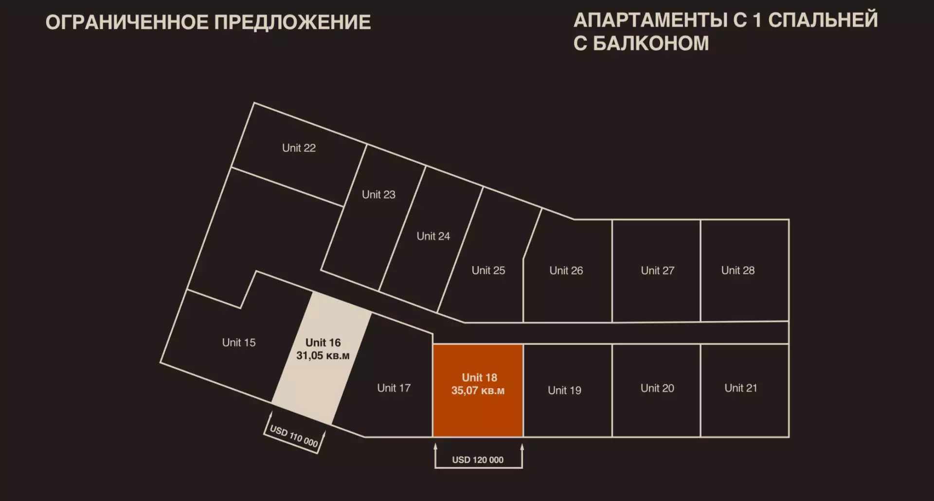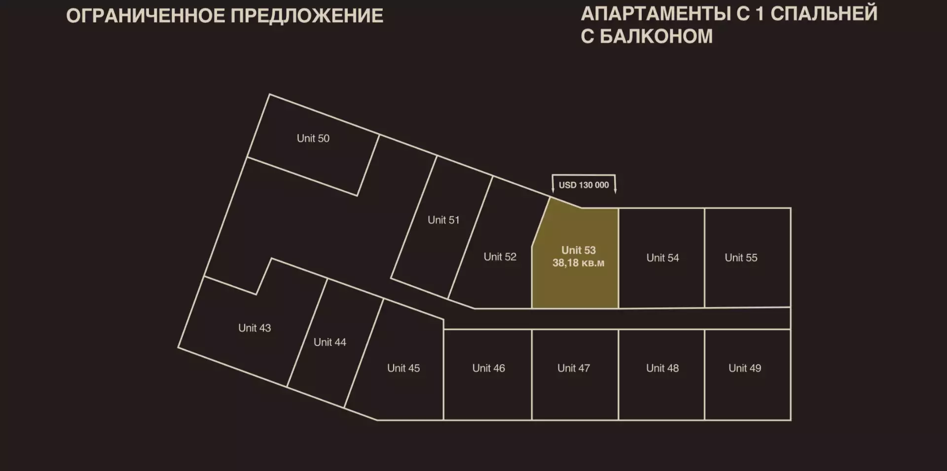 The complex has 55 carefully designed apartments for 1 and 2 bedrooms with view balconies, modern design, the highest quality of construction and materials.