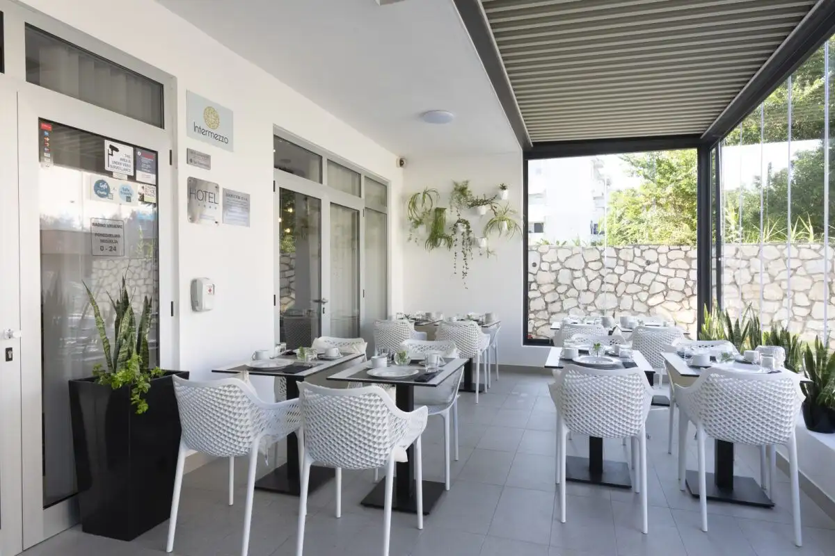 Each floor offers approximately 200 m2 of space, which totals about 1,000 m2 on five floors. The 19 rooms are divided into three categories - Deluxe, Deluxe Balcony and Superior - with areas ranging from 22 to 36 m2. Six rooms have French windows without balconies, six offer balconies overlooking the hills, and the remaining six have balconies overlooking the sea. All bathrooms are equipped with electric floor heating, controlled through a central intelligent system in the reception room. The entire hotel is equipped with smart technology, which in real time monitors occupancy, opening windows and doors, as well as the movement of staff. It also manages energy consumption by automatically turning off air conditioning when windows or doors are open.
