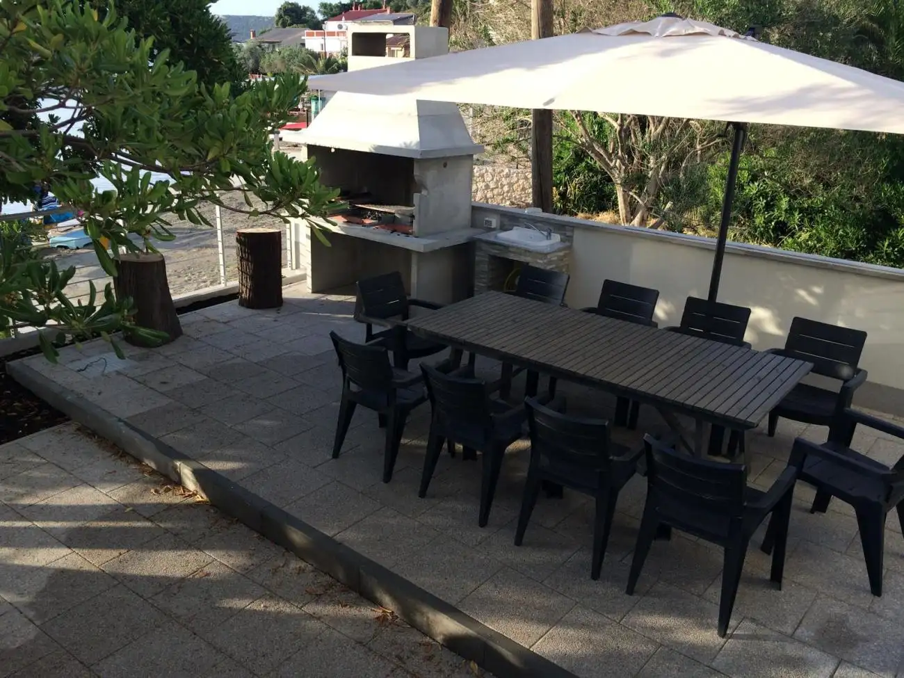 A well-maintained yard with an area of approximately 300 square meters offers direct access to the beach, which increases the attractiveness of the property for vacation rental or private use.