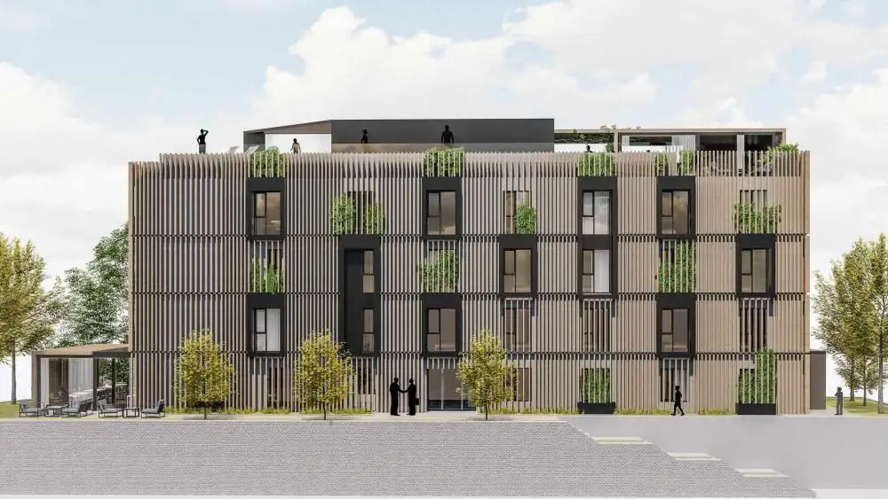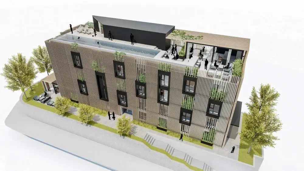 The architectural project focuses on a modern visual appearance, emphasizing vertical wooden elements and integrated greenery on the facade, creating a modern and attractive aesthetic in harmony with the urban environment.This project offers investors the opportunity to enter a well-defined and well-prepared project without delays caused by lengthy permitting procedures, with all capacity and the final market vision already established.