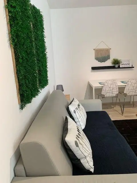 GROUND FLOOR: Upon entry, a small reception area greets visitors, serving as the hub connecting all levels via an internal staircase. Beyond lies a separate apartment comprising a bedroom, kitchen with dining area, and a bathroom, totaling 35m2. An illuminated and tastefully decorated staircase further enhances the visual appeal of the space.