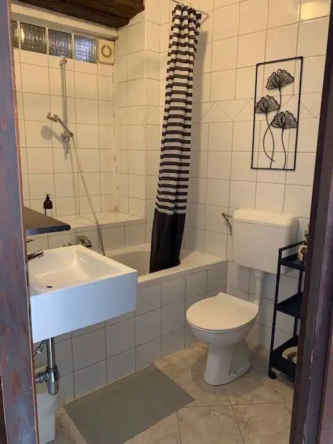 1ST FLOOR: Ascending the staircase, you reach the first floor, which offers another apartment and a separate room. The room, spanning 16m2, boasts its own bathroom. The apartment encompasses a bedroom, bathroom, and kitchen with dining area, totaling 35m2.