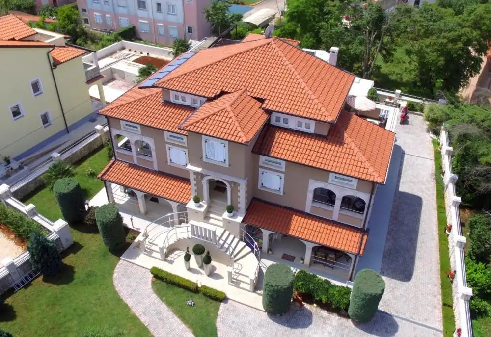 This apartment house, constructed in 2014 on a spacious 1126-square-meter plot, is a testament to modern coastal living. It comprises three levels, including the ground floor, first floor, and second floor. The property boasts a total of 7 residential units and 3 suites, in addition to a delightful tavern with a fireplace. To enhance the leisurely experience, a swimming pool graces the western side of the house, overlooking a covered terrace measuring 24 square meters. The income potential from rentals is substantial, with owners consistently earning high returns annually.