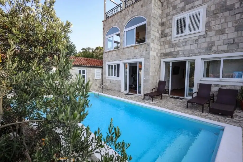 A mini-hotel with 7 apartments and a high stone wall, marking the entire territory like a kind of castle! The wall around the property provides a sense of maximum privacy and seclusion. The property is located in Zaton, not far from Dubrovnik, just 200 meters from the sea. The total area is 400 sq.m. The land plot is 622 sq. m. Guests can enjoy a swimming pool, a solarium, and spacious terraces with sea views. The property is fully furnished and equipped for rental.