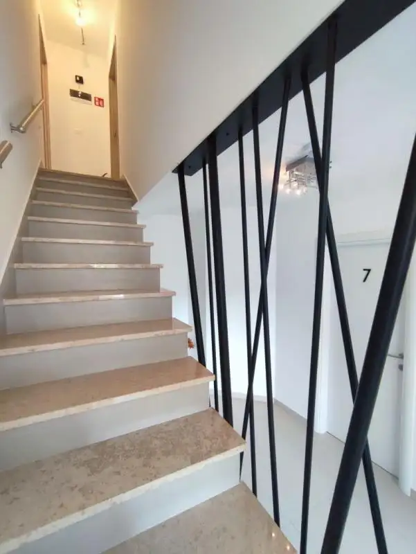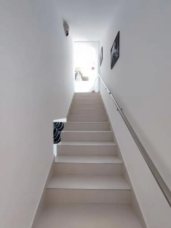 By taking the staircase, you access the upper floor, where four more spacious accommodation units are located, each with an entrance hall, bathroom, and a sleeping area with a smaller living space. One of the accommodation units also has its own gym.