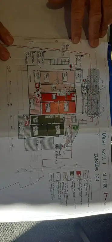 There are also 2 separate rooms (rather for personnel) and 1 large apartment with 4 bedrooms, 2 bathrooms with WC, kitchen with dining room, living room and a balcony.
