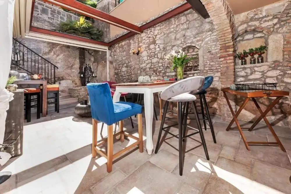 Nestled in the heart of the old town, the hotel spans an impressive 390m2. The property comprises five DeLuxe apartments, a spacious and functional restaurant with a terrace, a luxurious bar, and ample parking located nearby.