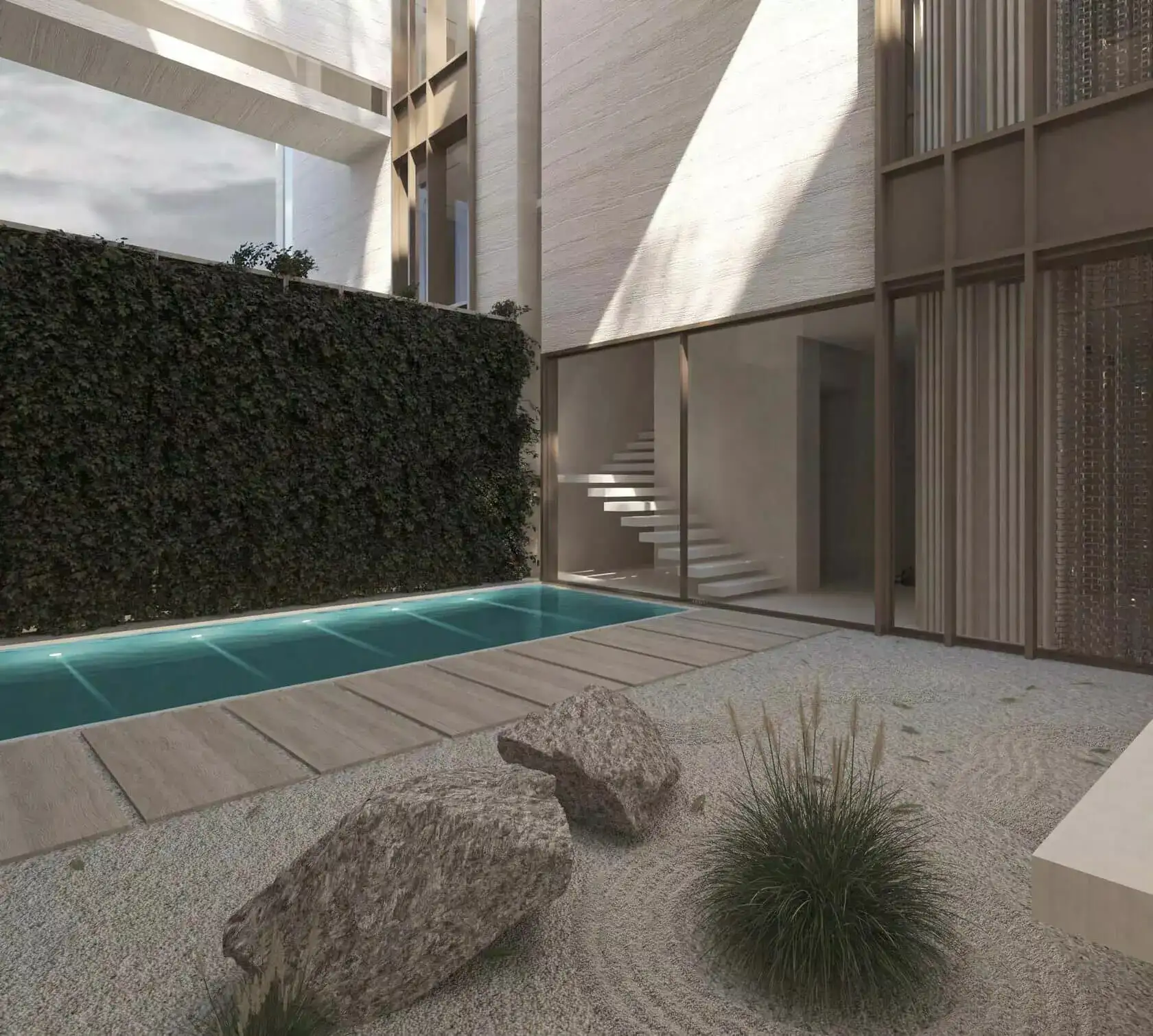 Amenities: open swimming pool, gym, BBQ area with dining, indoor and outdoor fitness areas, indoor yoga spaces, crossfit zone, dance studio, sound therapy zone, tennis court and paddle tennis court, and much more.