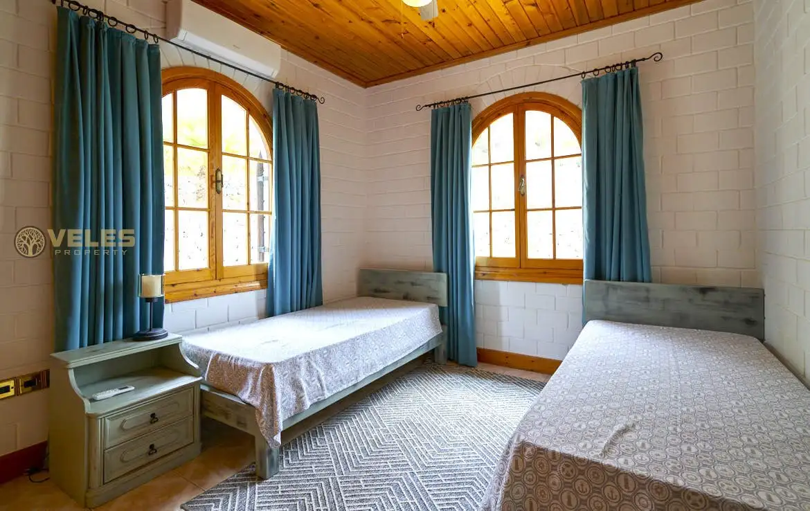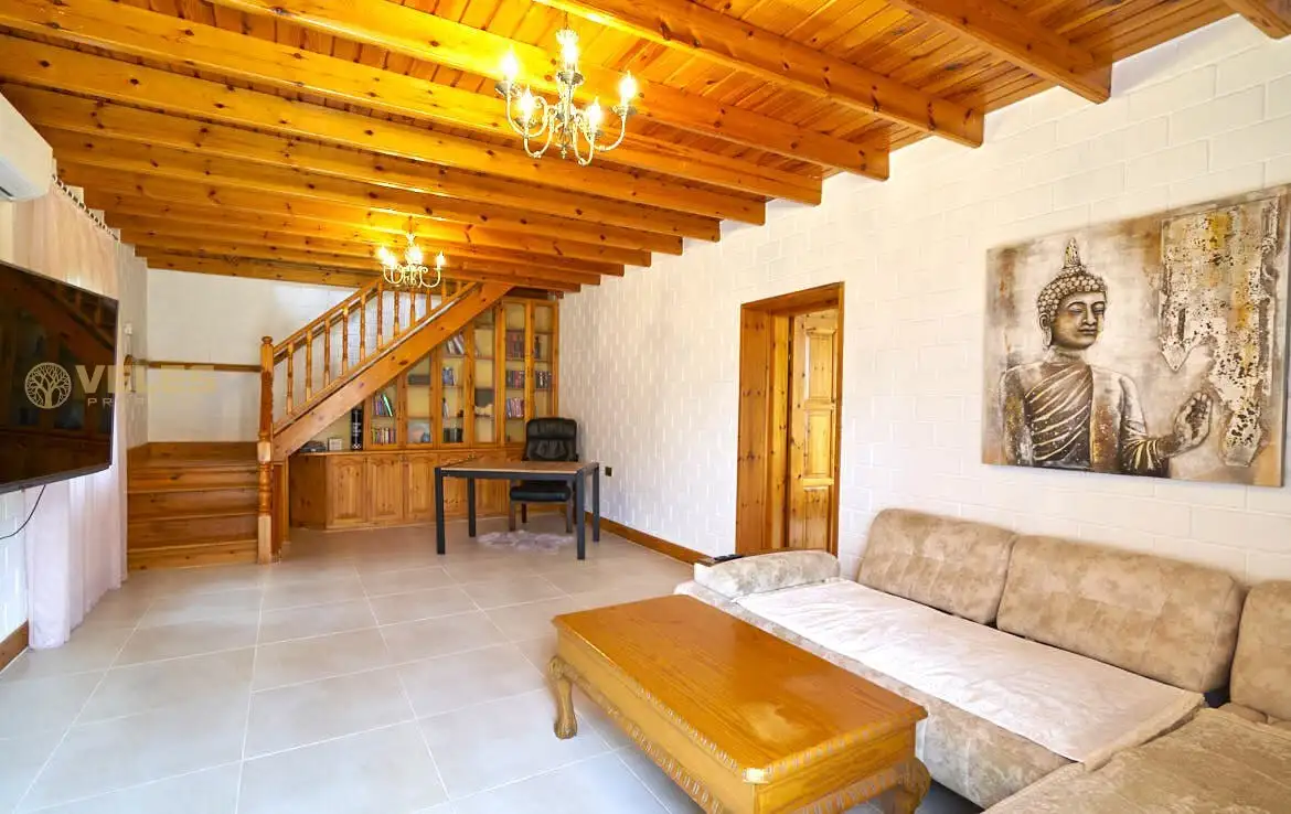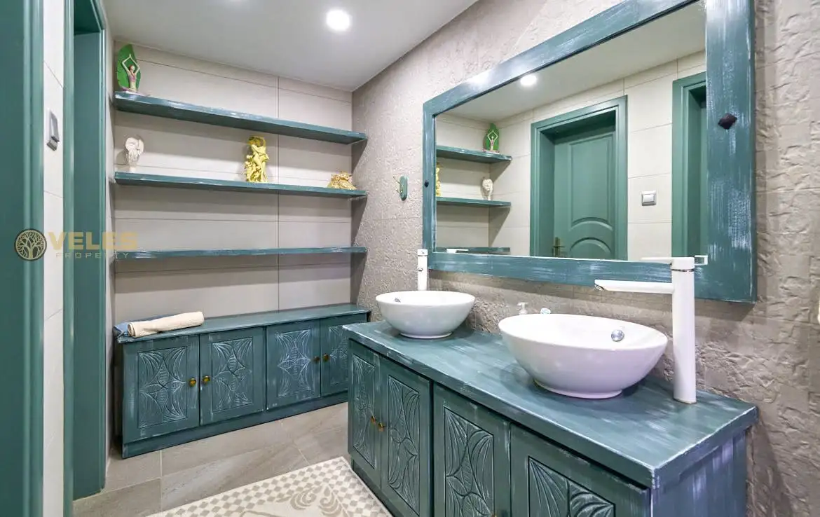 Unique Villa in Alsanjak will attract your attention! Authentic, unique villa for sale in the foothills of Alsanjak. There are only mountains around and a couple of nice neighbors across the street. For those who appreciate silence and nature, due to the rocky terrain, the landscape is delimited by steps, on which you can organize a separate scenario of landscaping. In addition, there is an artificial waterfall with illumination. There is an area for a bonfire. The views from the terrace of the second floor are simply mesmerizing. There is a private well on the territory. The villa consists of 2 levels, but each level is independent. On the first level there are 2 floors, on the first level - kitchen, living room, on the second - two bedrooms and a bathroom. On the second level of the villa there is a kitchen, living room and three bedrooms, one of which has its own bathroom. There are also 2 bathrooms for the other bedrooms. Thus, you get two separate entrances: 5 bedrooms, two halls, two kitchens, 5 bathrooms. Unfortunately, there is no swimming pool on the plot, but there is permission to build one.From all windows there is a view of the sea and the mountains. The villa is fully furnished with wooden furniture and the finishing of the house is made of natural wood. Walking in and around the house gives the feeling of walking through a castle. Great location, just a few minutes by car and you have access to all supermarkets and beaches of the region. A great option for a large family who appreciate the naturalness of the building materials and the beauty of the mountain landscape. So, Unique Villa in Alsanjak is waiting for you!With the purchase of this villa
